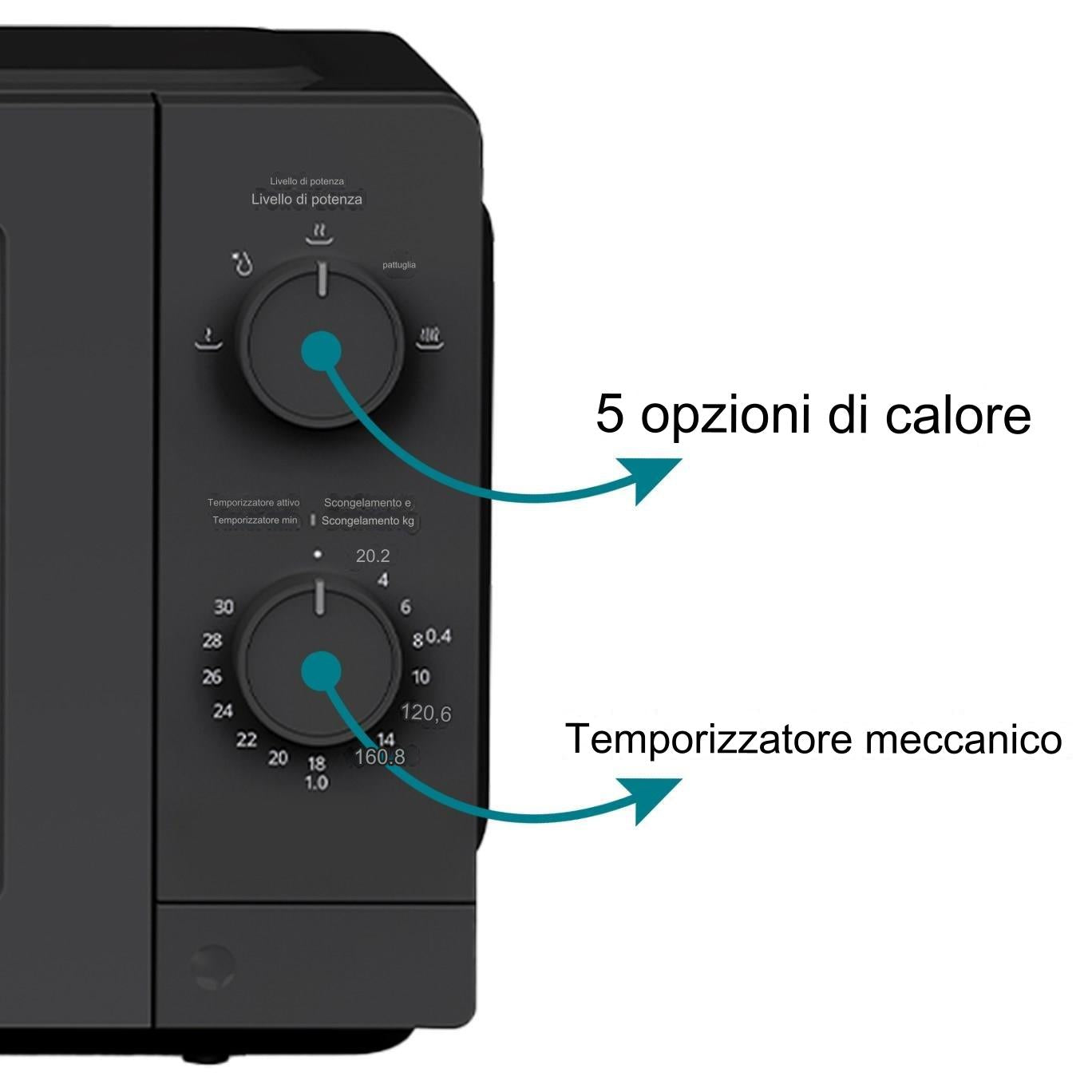 Piano di lavoro nero di alta qualità con 20 litri, interno nero e facile da pulire, fino a 1100 Watt di potenza con 6 livelli di potenza