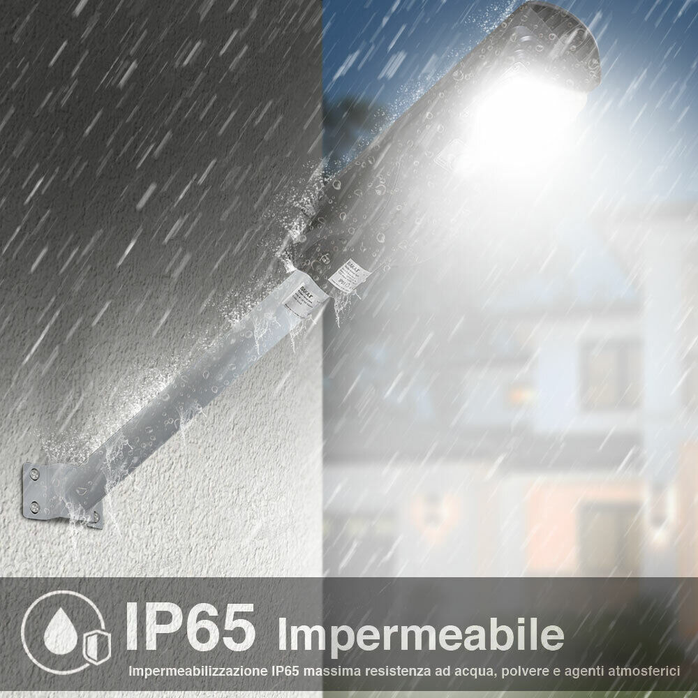 Il lampione stradale da esterno Bakaji è fornito di pratico sensore di movimento, che passa automaticamente il livello di illuminazione del faretto da risparmio energetico (178 lumen) ad illuminazione massima (356 lumen) ogni qualvolta il sensore rivela il movimento di persone, ciಠgarantisce un elevato risparmio energetico durante l'utilizzo di quest'ultimo