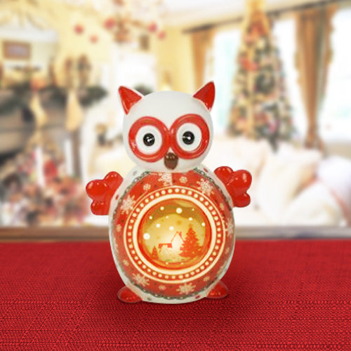 Lanterna Ceramica Gufo Con Candela Elettrica 14 Cm Decorazioni Natalizie
