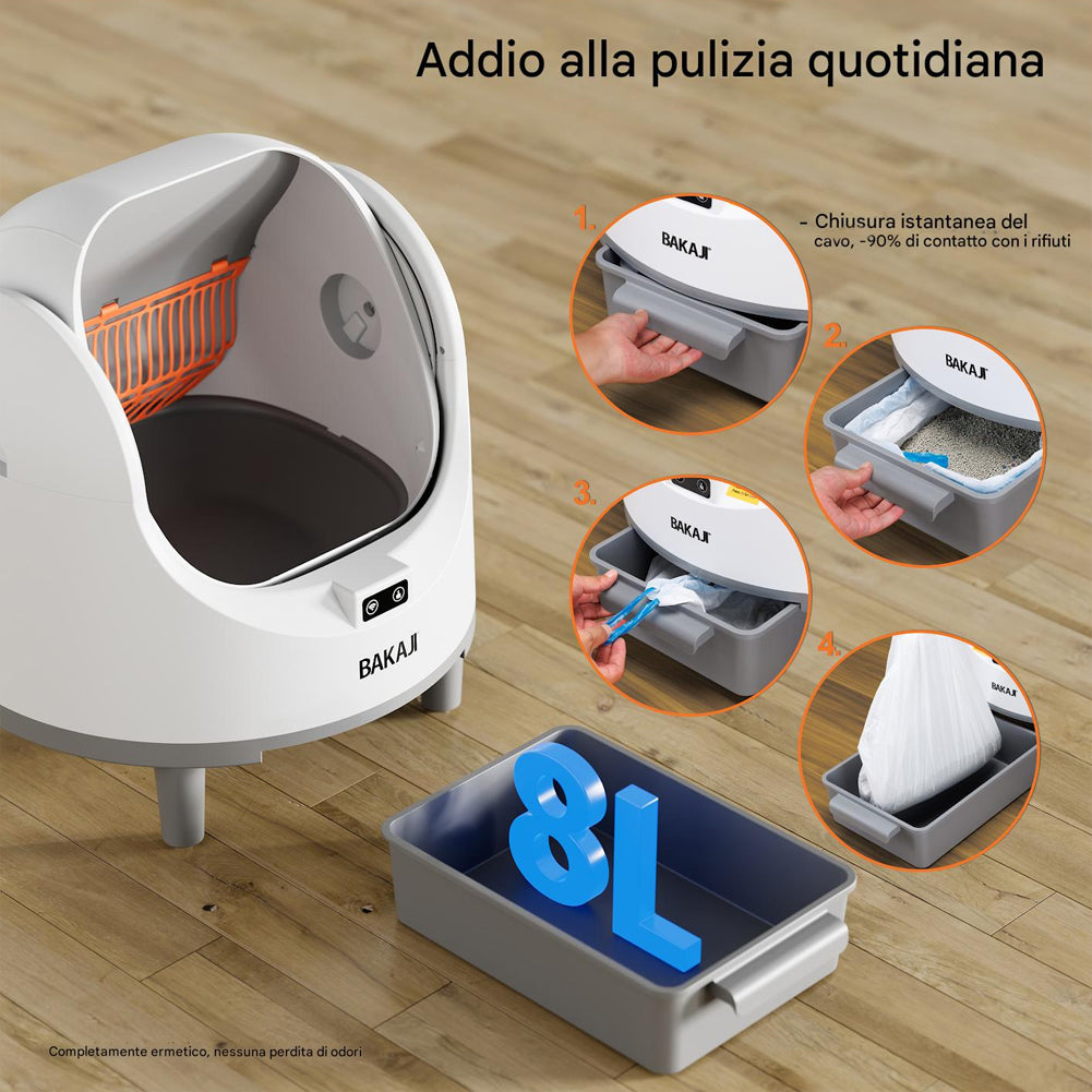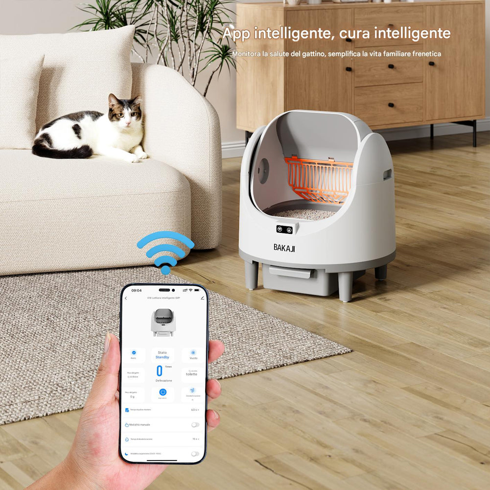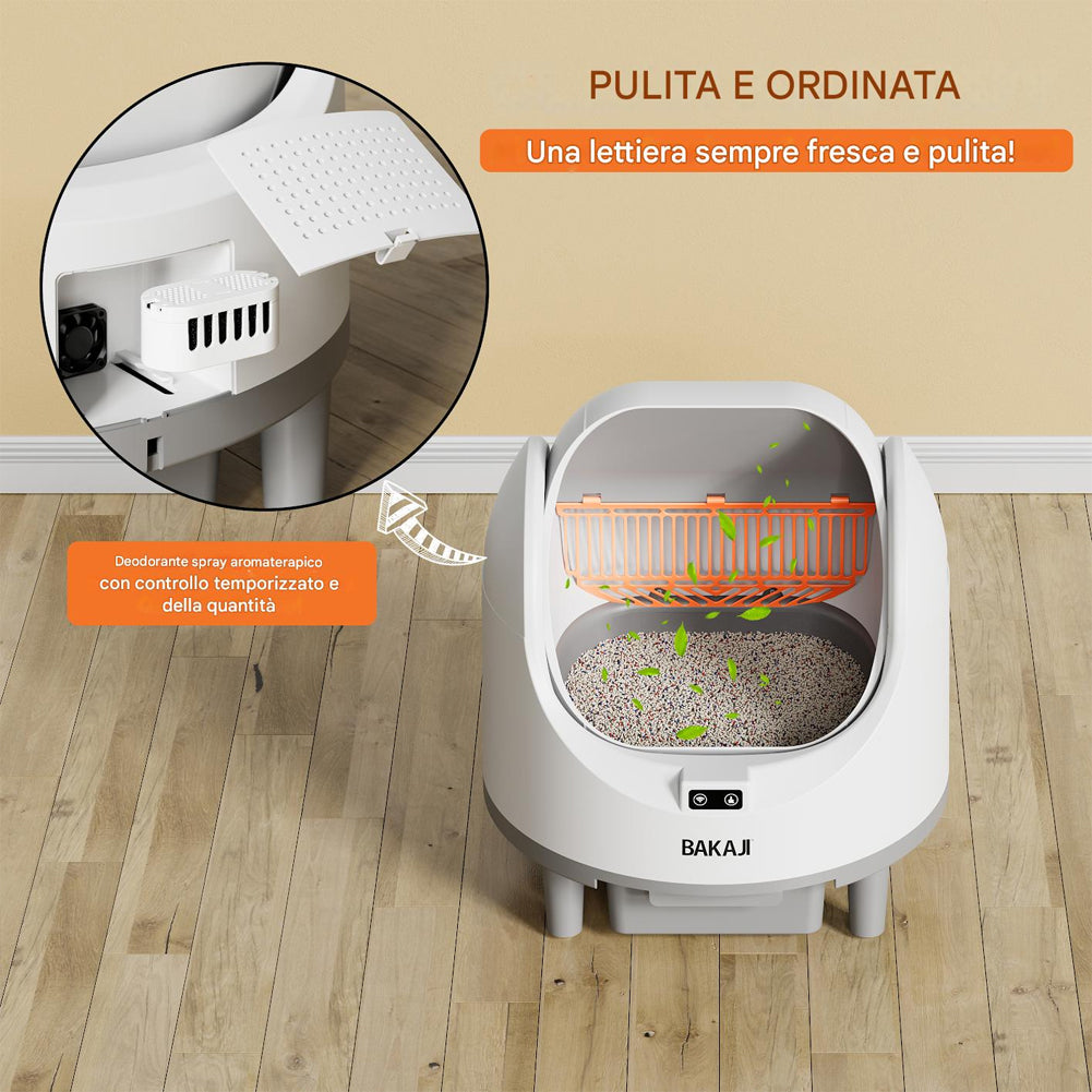 1 x Lettiera Autopulente XXL Aperta per Gatti Smart Wifi con App Capacità 70 Litri