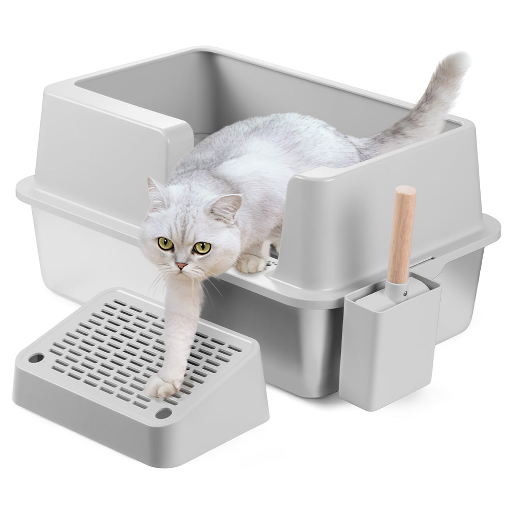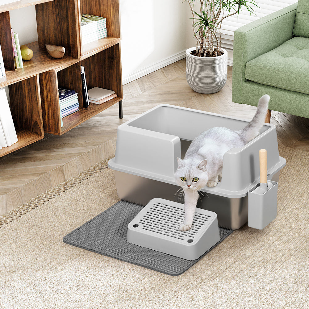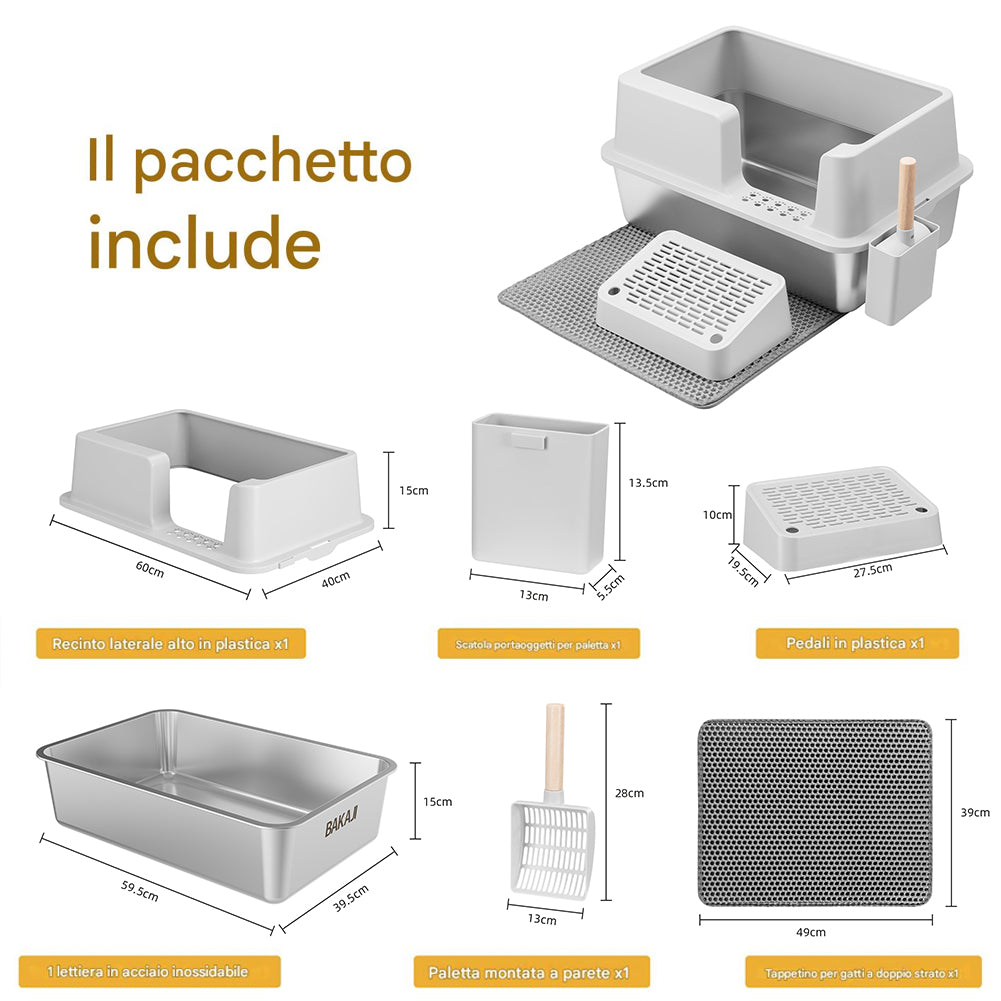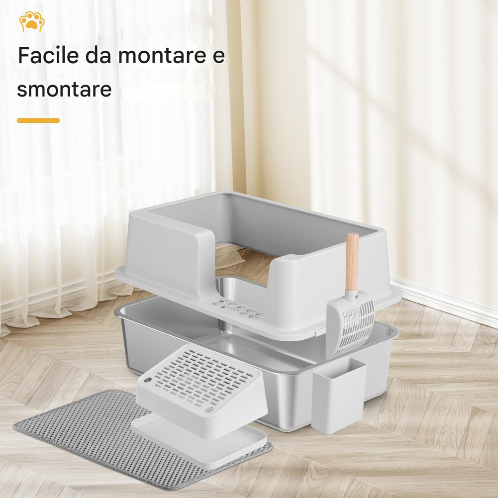 1 x Lettiera per Gatti Acciaio con Tappetino e Supporto Anti Sabbiolina Capacità 35L