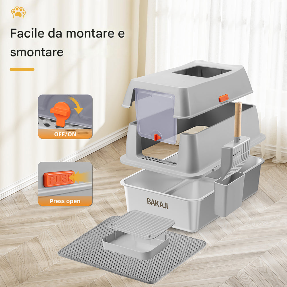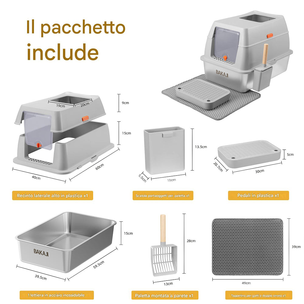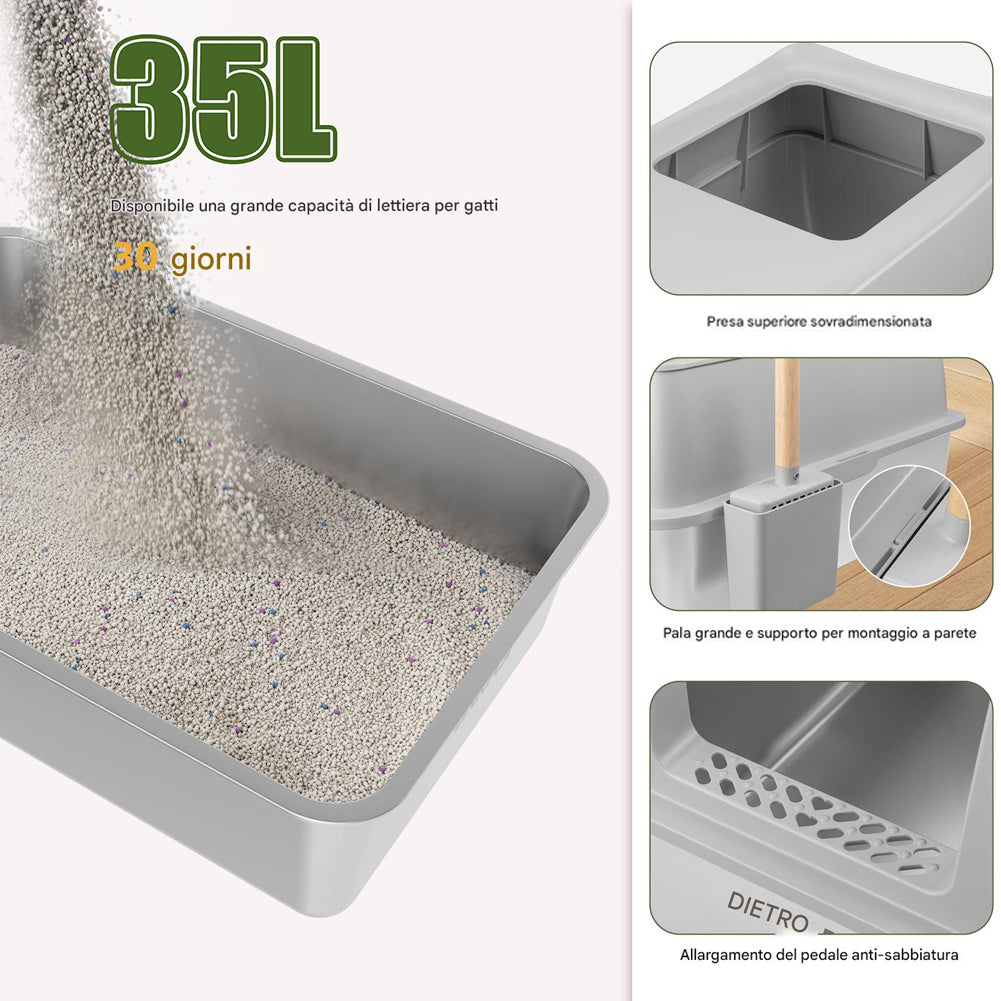 1 x Lettiera per Gatti in Acciaio 35L Sportello Paletta e Pedana Anti Sabbiolina
