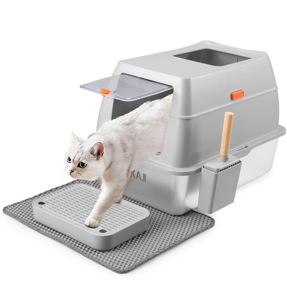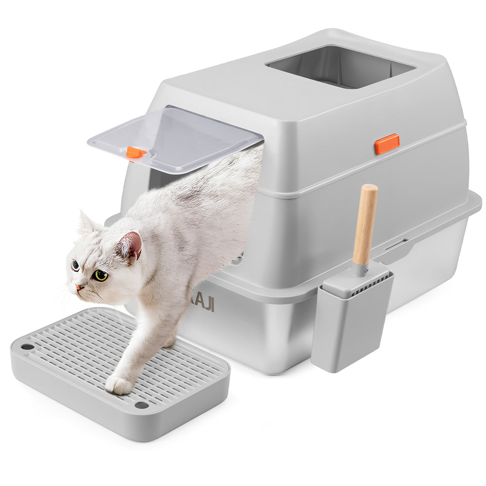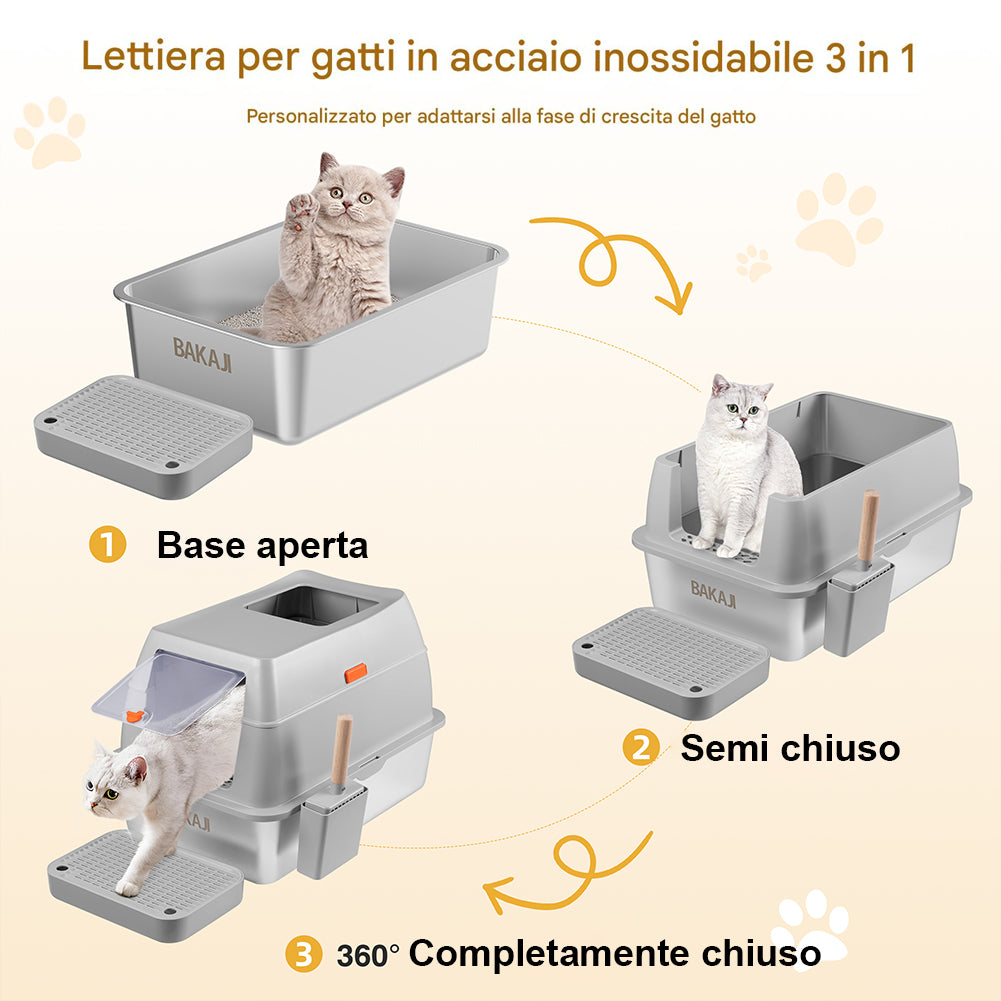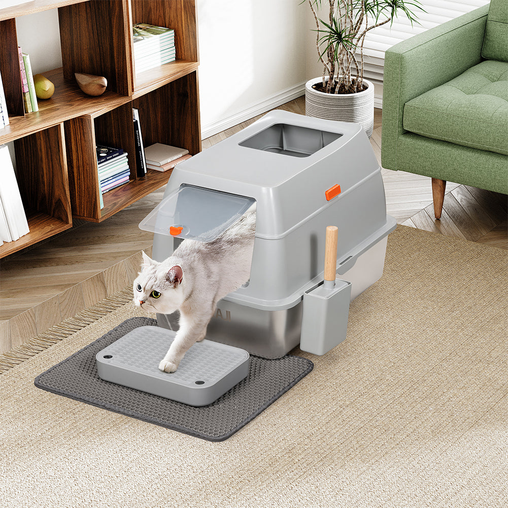 1 x Lettiera per Gatti in Acciaio 35L Sportello Paletta e Pedana Anti Sabbiolina