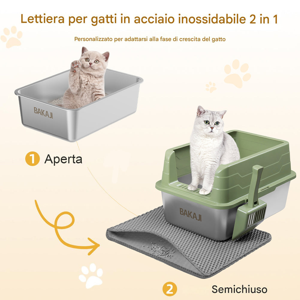 Grazie alla struttura antiruggine in acciaio e al fondo liscio, la lettiera si pulisce in pochi gesti.