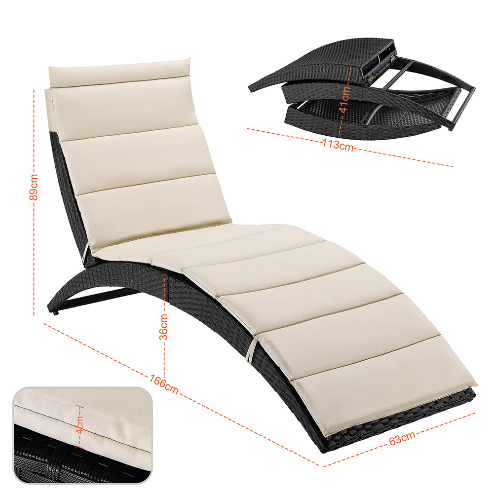 1 x Lettino a Sdraio Nero Pieghevole Salvaspazio con Cucino da Esterno Giardino