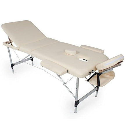Lettino Massaggi Alluminio Pieghevole 3 Zone Fisioterapia SPA Beige 12kg + Borsa
