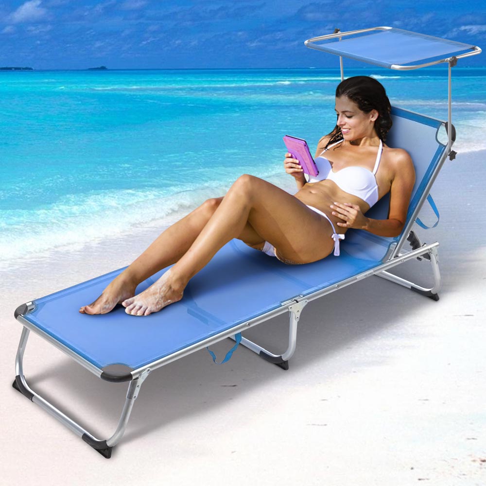 Lettino Prendisole con Tettuccio Parasole Sdraio Mare Blu Alluminio Pieghevole