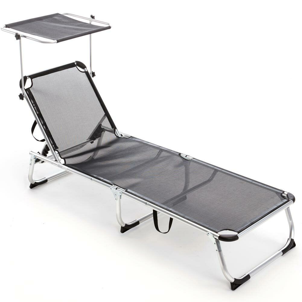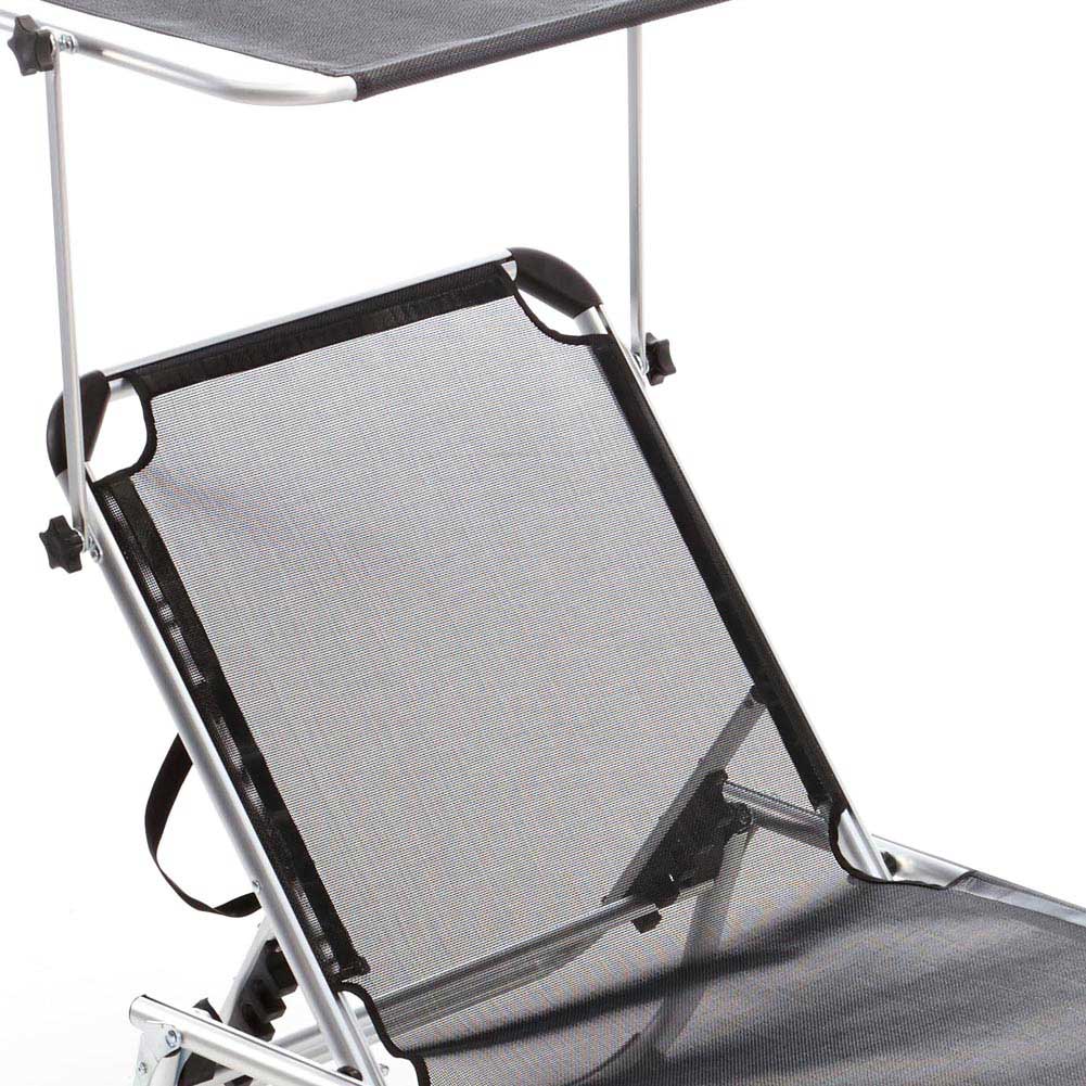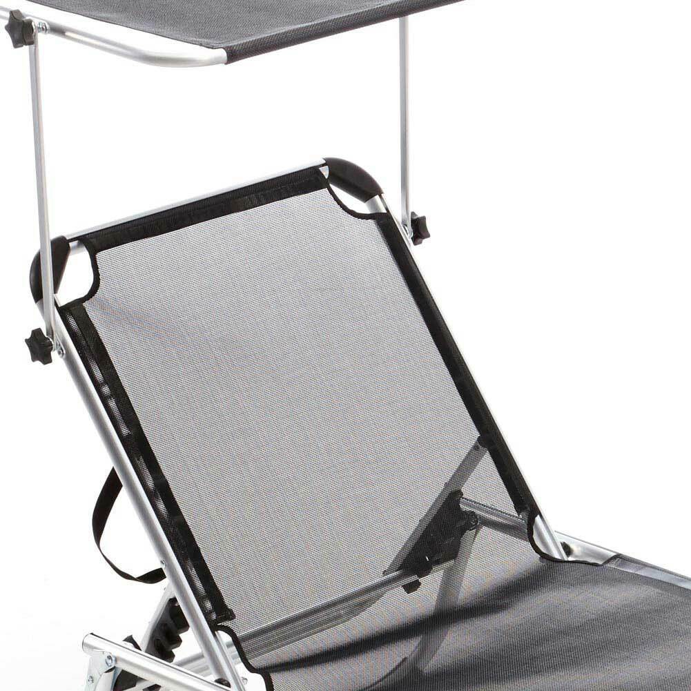 Lettino Prendisole con Tettuccio Parasole Sdraio Mare Grigio Alluminio Pieghevol