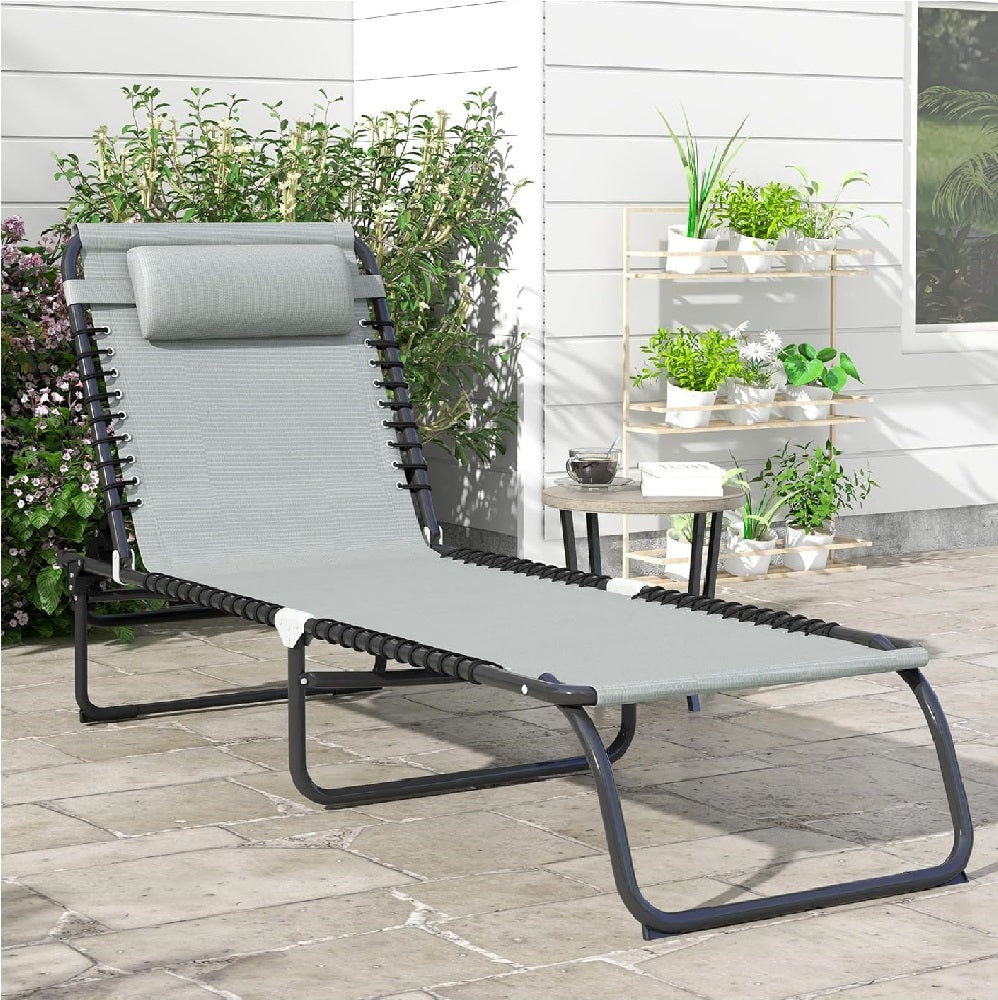Lettino Prendisole Grigio Pieghevole Cuscino Reclinabile 4 Posizioni Robusto
