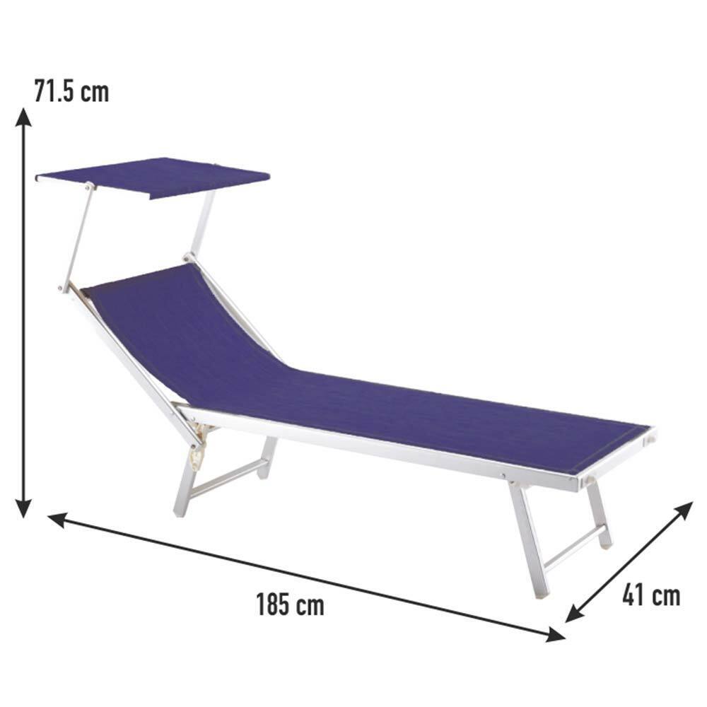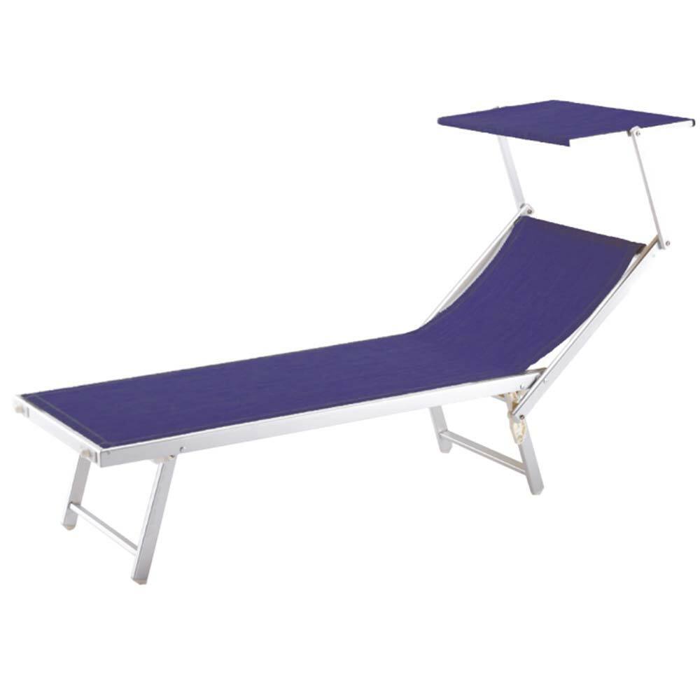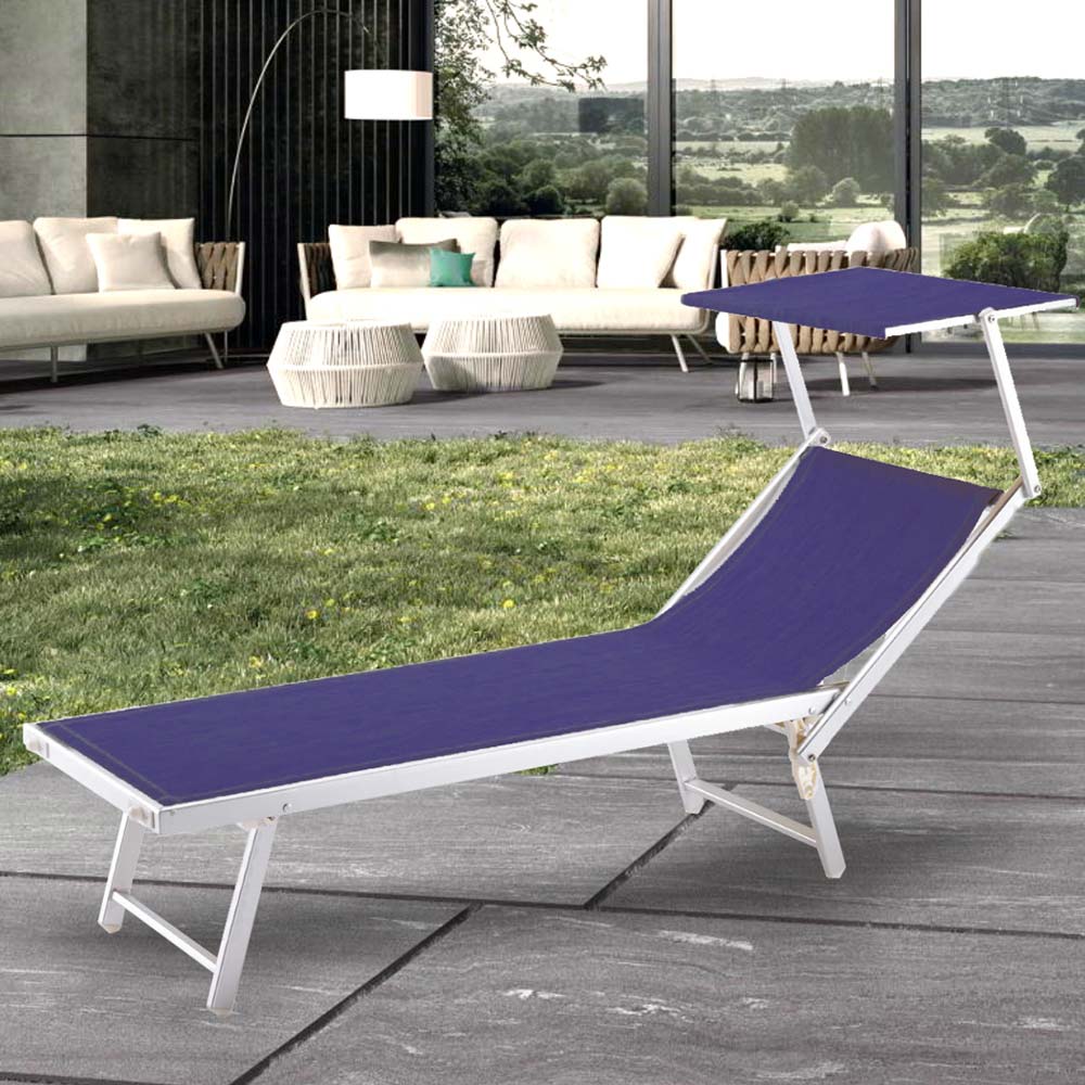 Lettino Prendisole Lido Alluminio con Parasole Piscina Mare Giardino Blu Melange