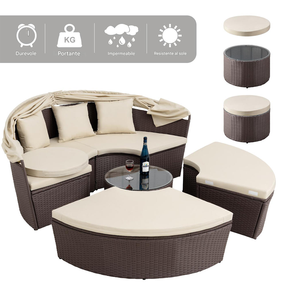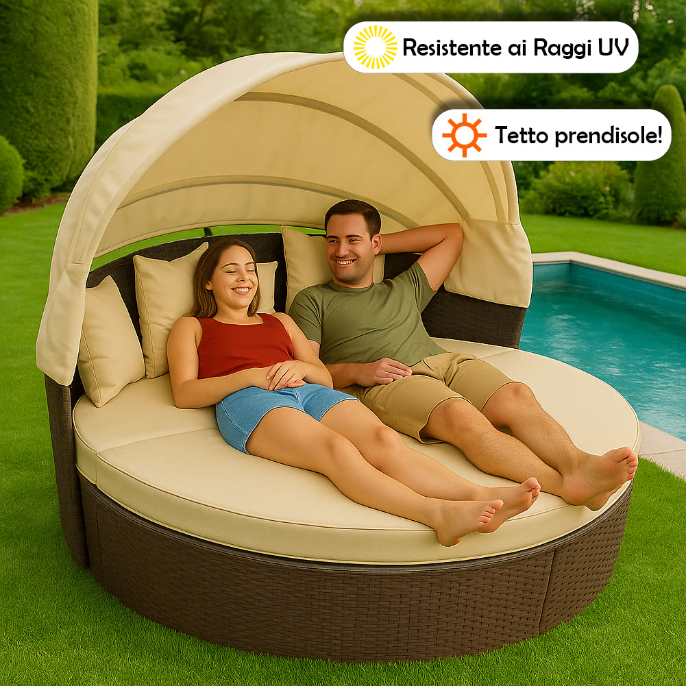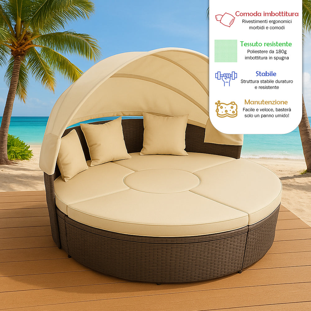 Eleganza multifunzionale per ogni spazio: Trasforma il tuo giardino, terrazzo o veranda in una raffinata oasi di relax con questo elegante divano prendisole rotondo.