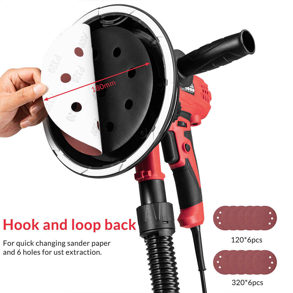 La levigatrice da muro BAKAJI funziona con dischi abrasivi da 18 cm, incluso nella confezione troverai ben 12 dischi 6 da 120 e 6 da 320