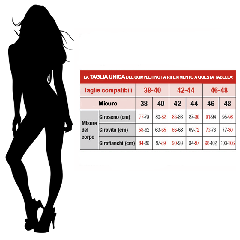 Legato al collo e alla schiena, questo completino darà valore al vostro decoltè evidenziato da due stringhette di tessuto unite a forma di V. Fianchi, schiena e glutei saranno completamente liberi dal tessuto, eccezione fatta per le stringhe della gonnellina che intrecciate sul fondoschiena daranno sfogo ad ogni freno inibitorio.