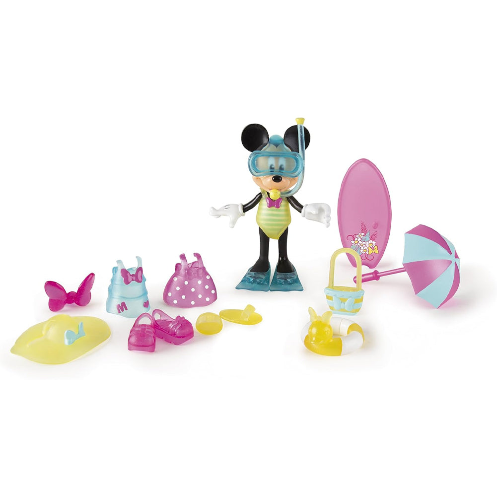 Il set comprende ben 12 accessori, tra cui cappelli, occhiali da sole, borse e infradito, perfetti per completare il look di Minnie e arricchire le sue avventure in spiaggia.