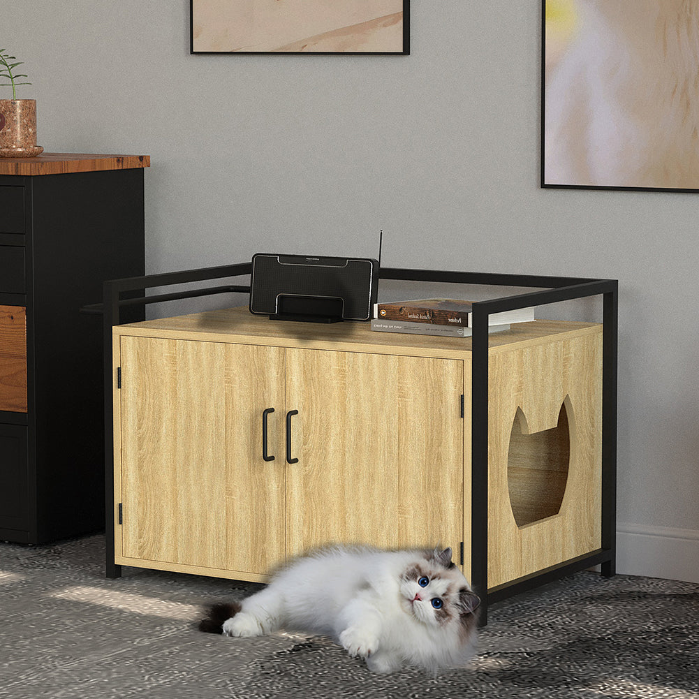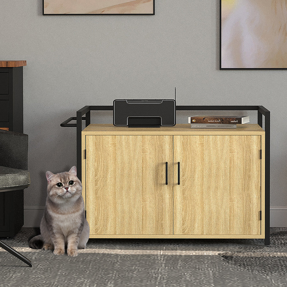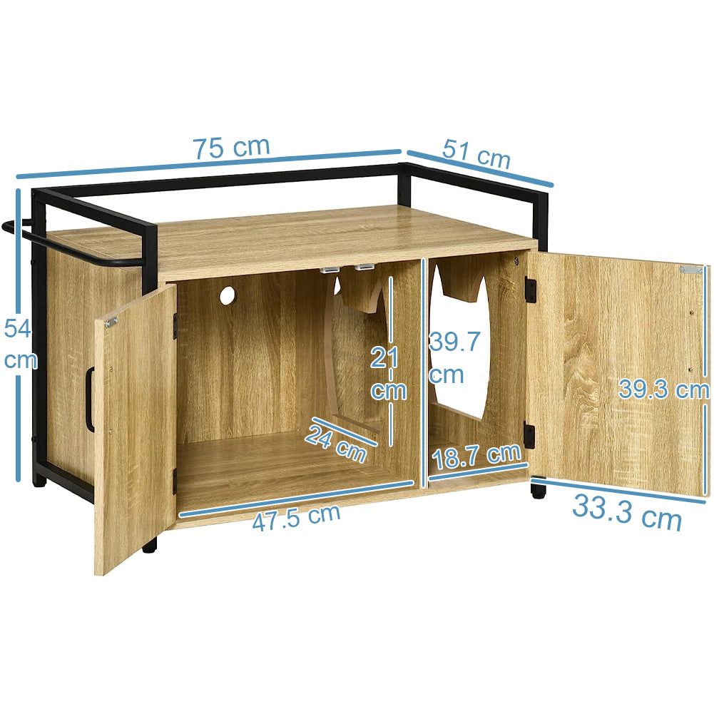 1 x Mobile Lettiera per Gatti Ingresso Laterale e Porte in Legno Chiusura Magnetica