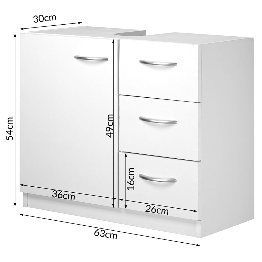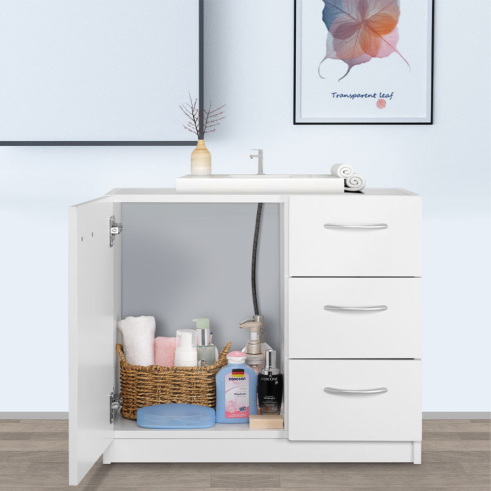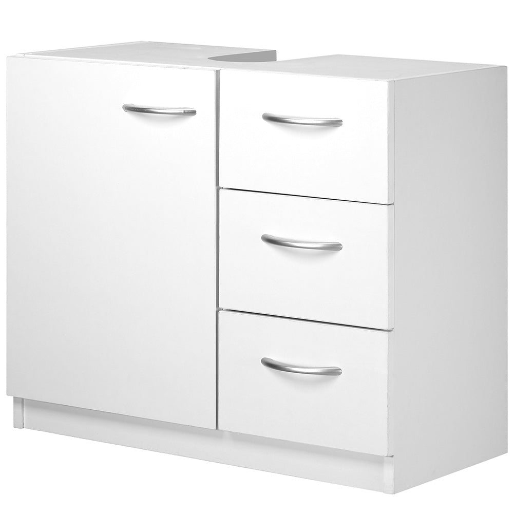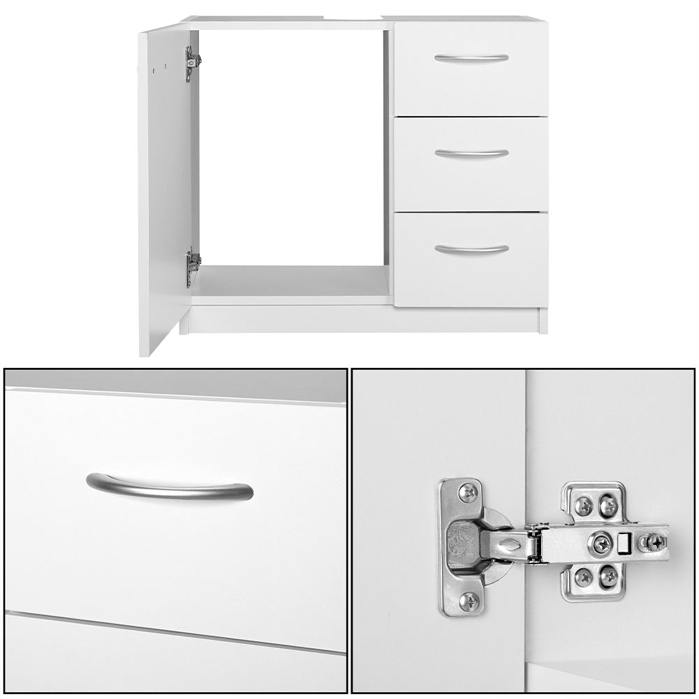 Mobile Mobiletto Armadietto Bagno Lavandino Lavabo Cassetti e Ante Legno Bianco