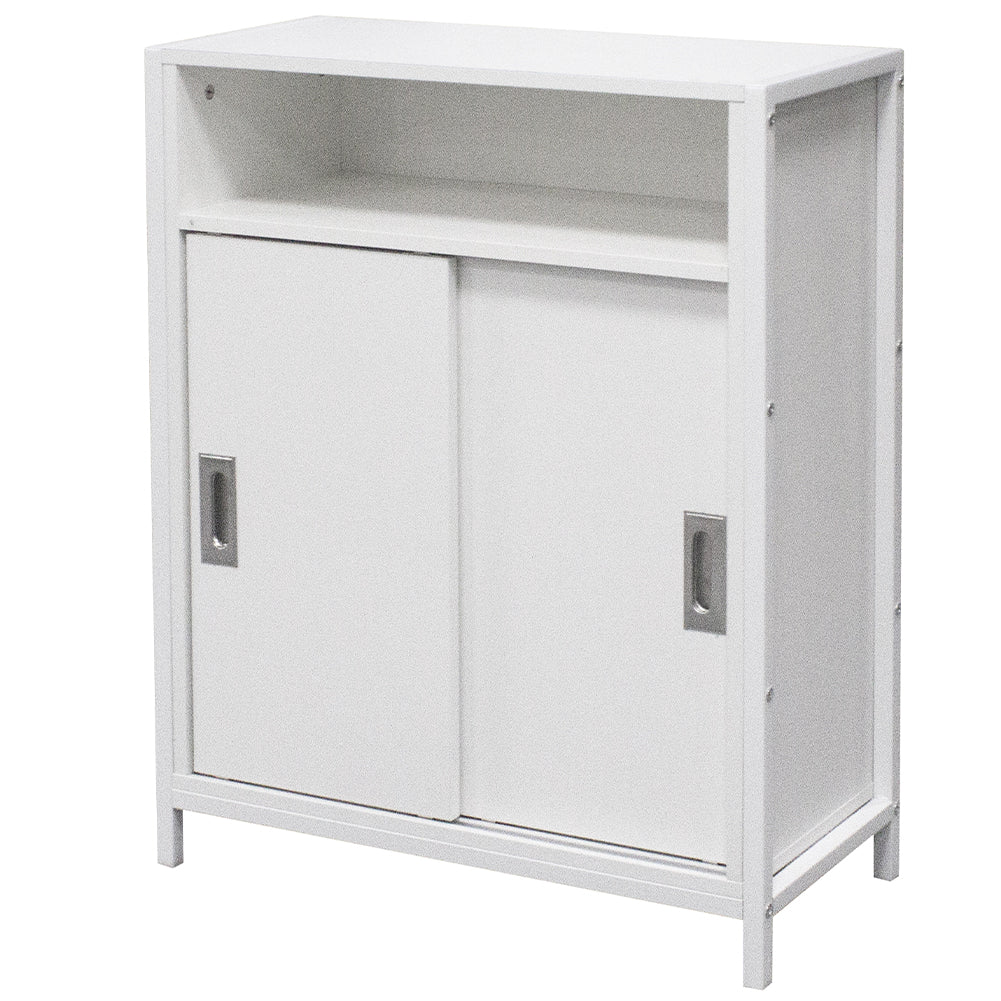 1 x Mobile Mobiletto Basso Libreria Moderno 2 Ante Scorrevole e 3 Ripiani Bianco