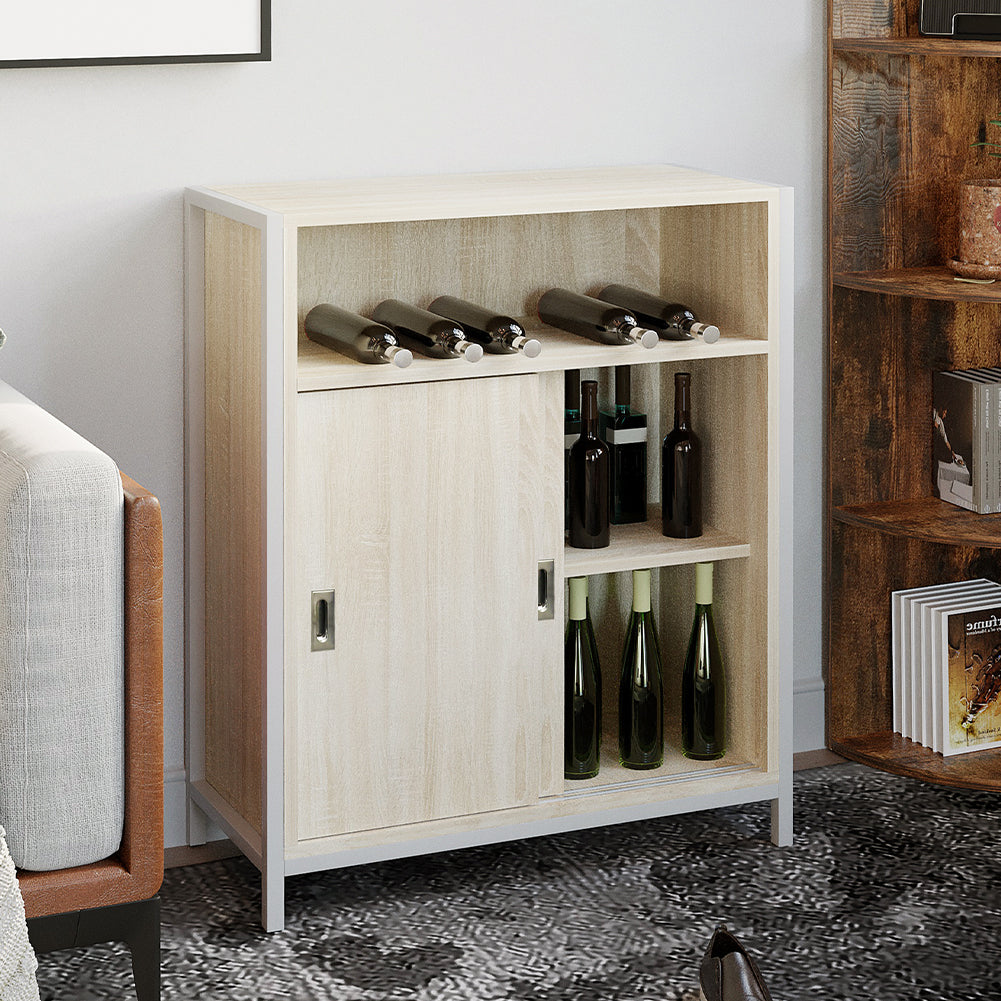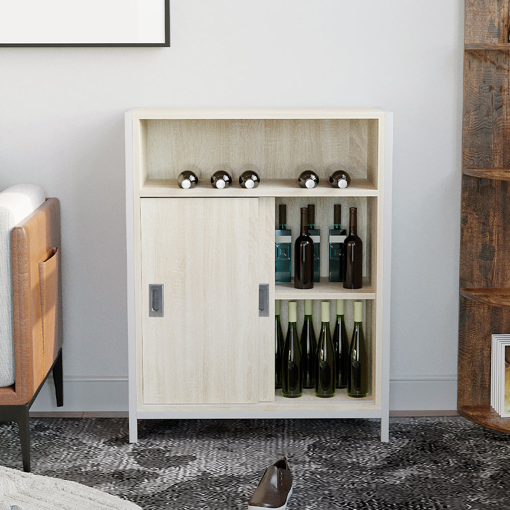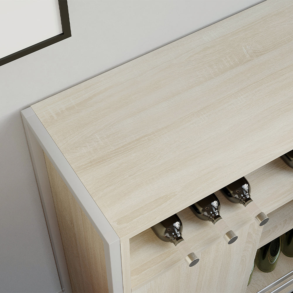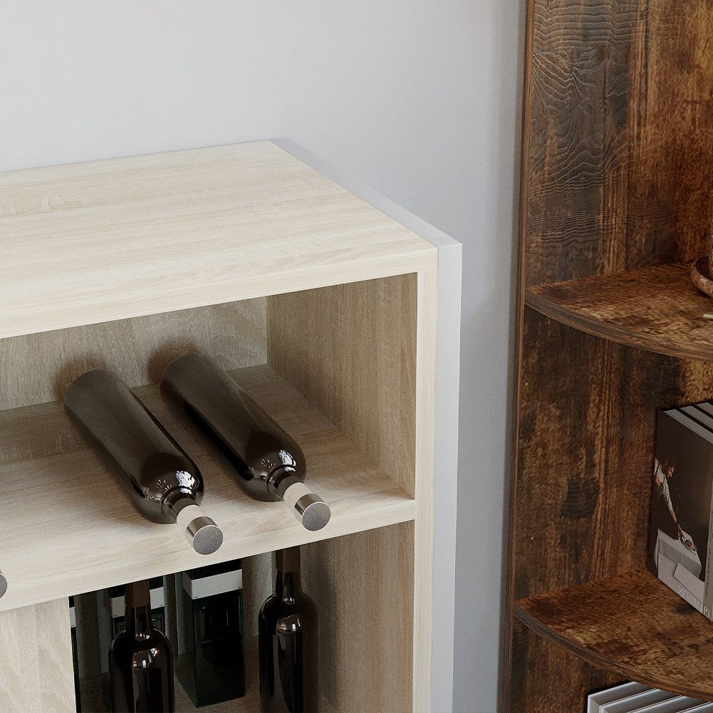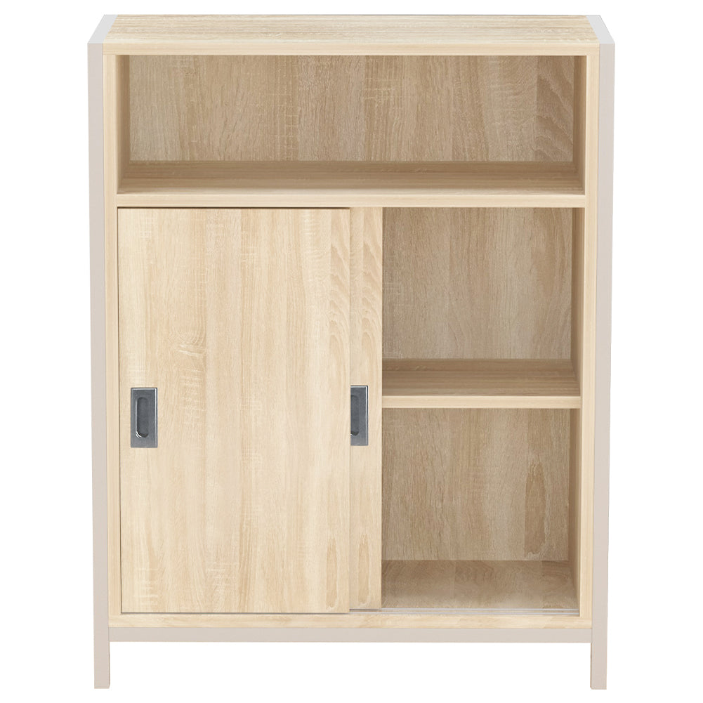 1 x Mobile Mobiletto Basso Libreria Moderno 2 Ante Scorrevole e 3 Ripiani Naturale