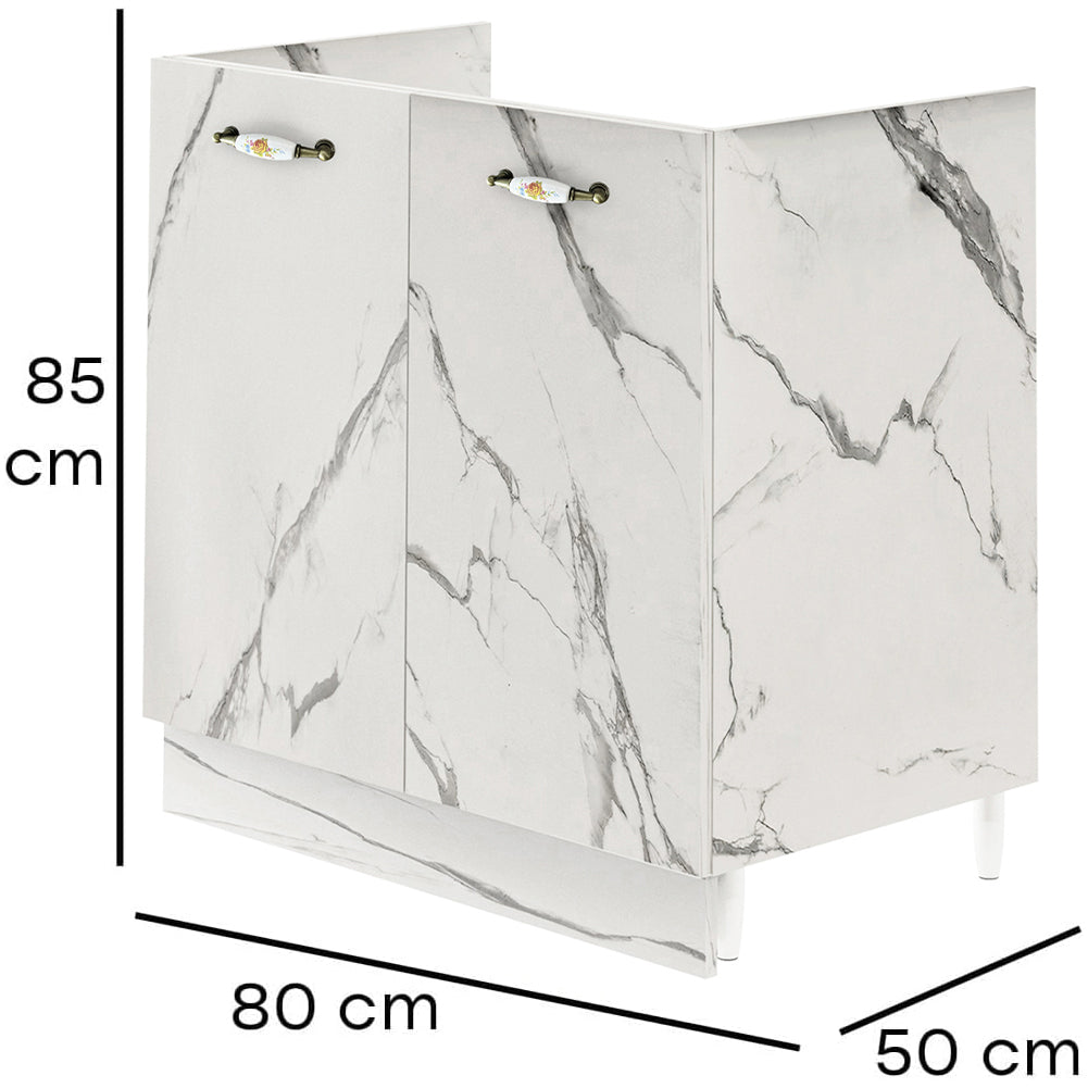 1 x Mobile Sottolavello Cucina Componibile Mobiletto Bianco Effetto Marmo con 2 Ante