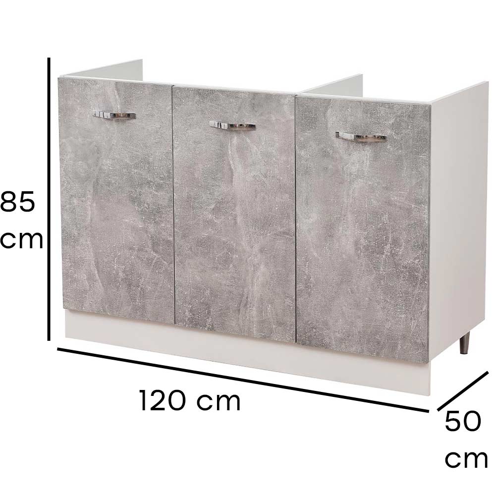 1 x Mobile Sottolavello Cucina Componibile Mobiletto Colore Grigio Cemento 3 Ante