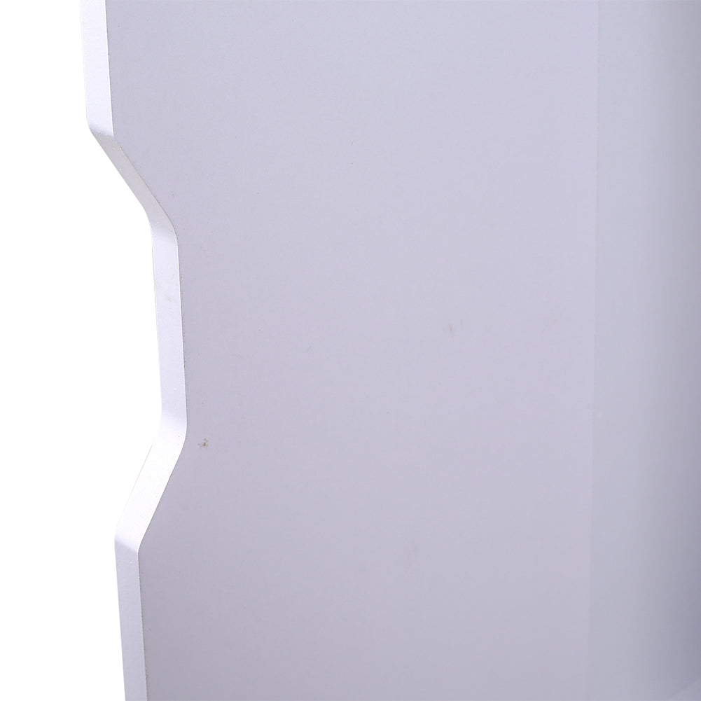 Realizzato interamente in legno ricoperto di melamina e dal colore bianco, questo mobiletto è fornito di 3 ante di cui: 2 ante con all'interno 2 ripiani ed 1 anta con un unico vano, inoltre posto sulla parte superiore vi è un ripiano aperto.