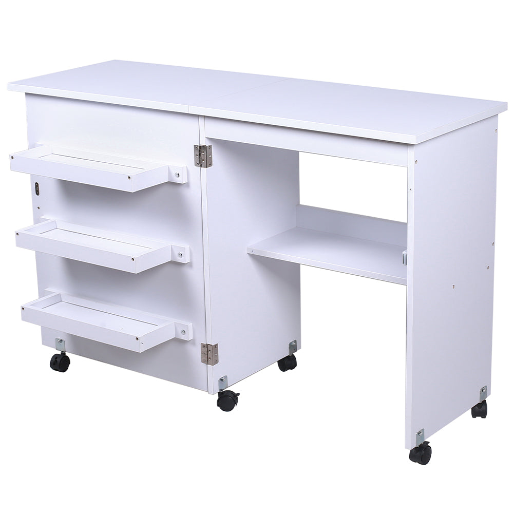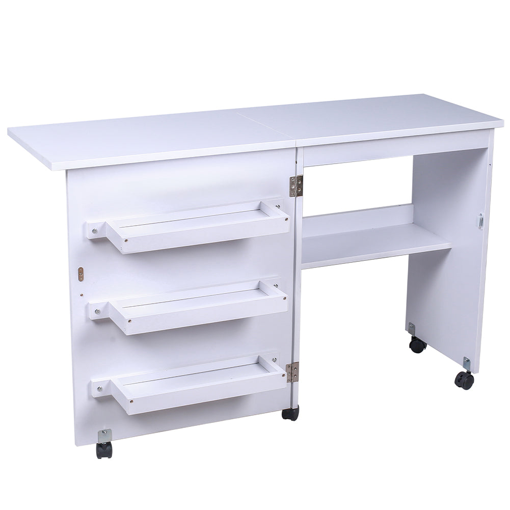 Mobiletto per Macchina da Cucire Tavolo Cucito Pieghevole Multiuso Legno Bianco