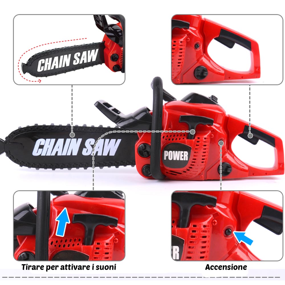 Motosega Giocattolo per Bambini Sega Elettrica Funzionante con Suoni Realistici