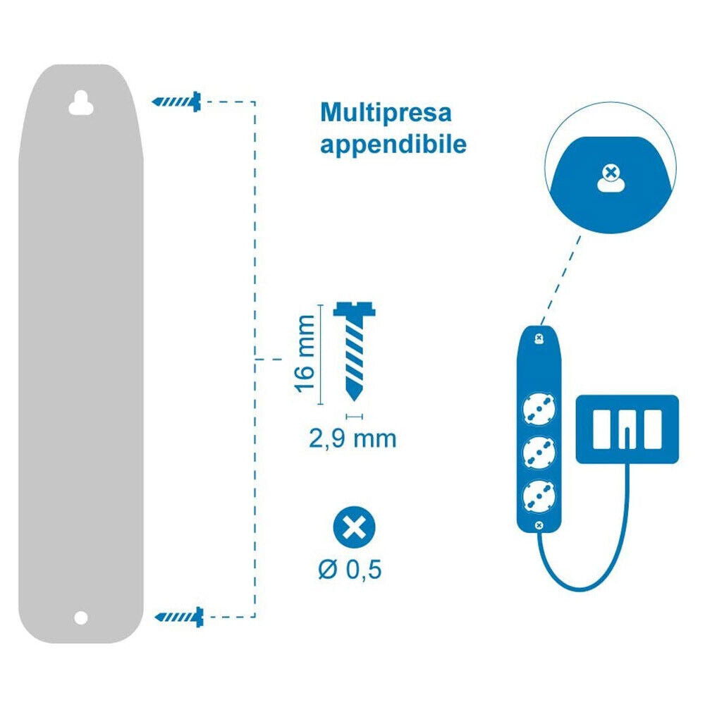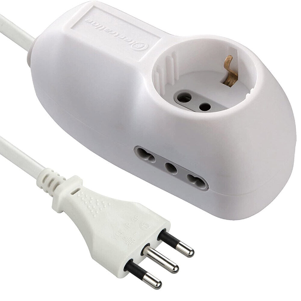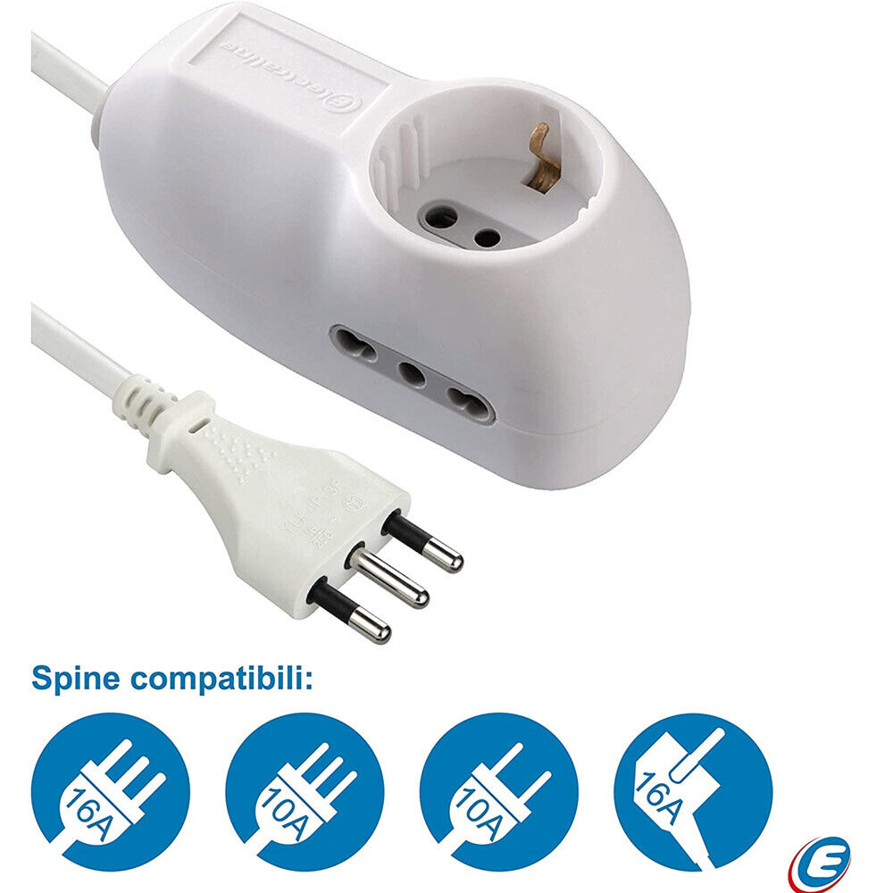 Multipresa Ciabatta Eelettrica 3 Posti Presa Schuko + 2 Italiana Bianco Cavo 1mt