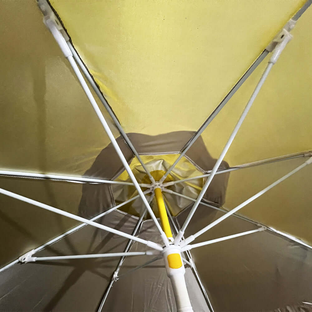 Ma ciò che rende davvero versatile e particolare questo ombrellone è il bellissimo fine punta a tridente che permette di fissare saldamente l'ombrellone a qualsiasi tipo di terreno sia esso sabbia, terra o prato, permettendo di utilizzare quest'ultimo in qualsiasi luogo: spiaggia, bosco, lago, giardino ecc...