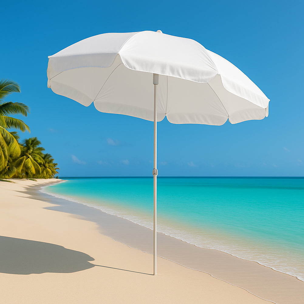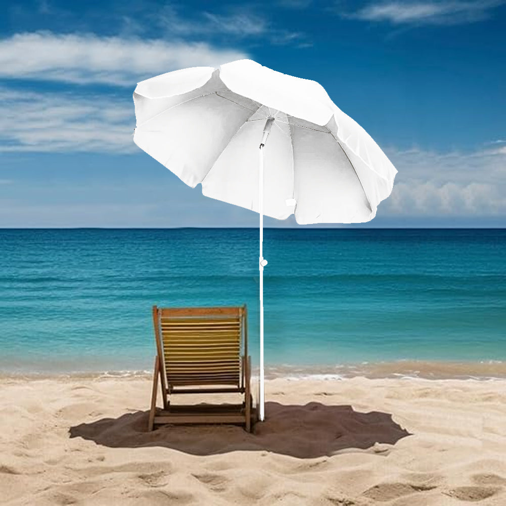 1 x Ombrellone da Mare 200 cm Bianco con Palo in Alluminio 8 Ribs e Borsa Trasporto