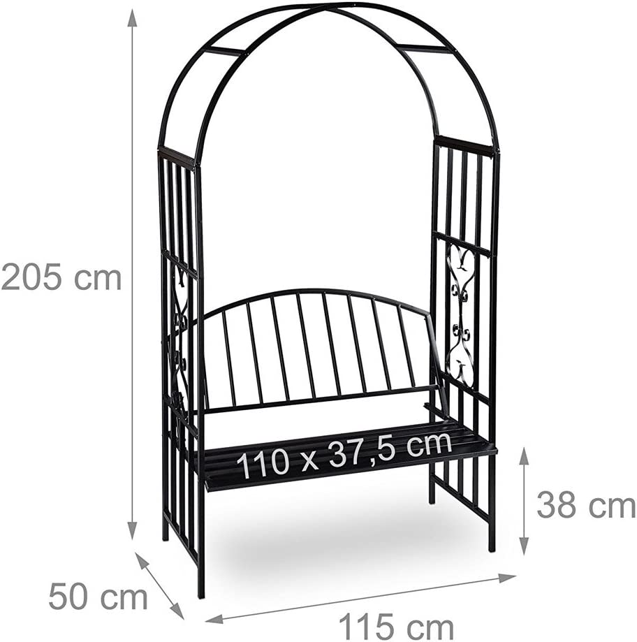 1 x Panchina 2 posti con Arco da Giardino per Rose e Piante in Metallo 110x50x205 cm