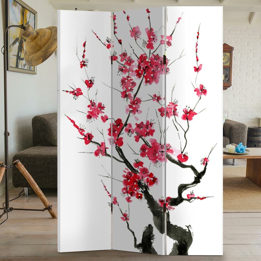 Paravento Separe 3 Pannelli Stampa Fronte Retro Ciliegio Giapponese 180 x 120 cm