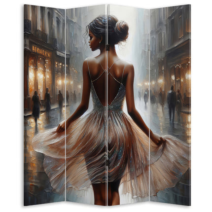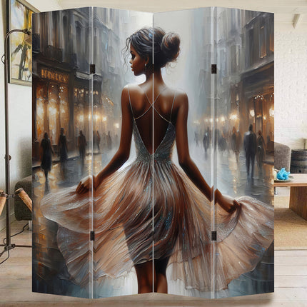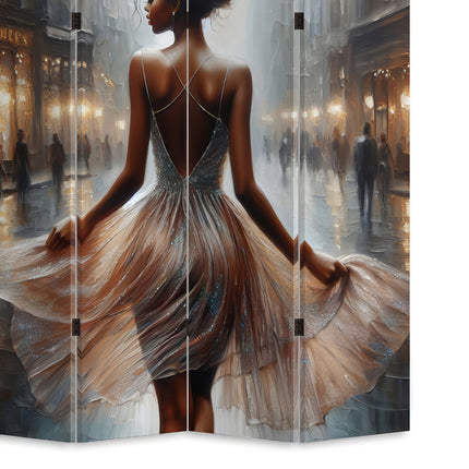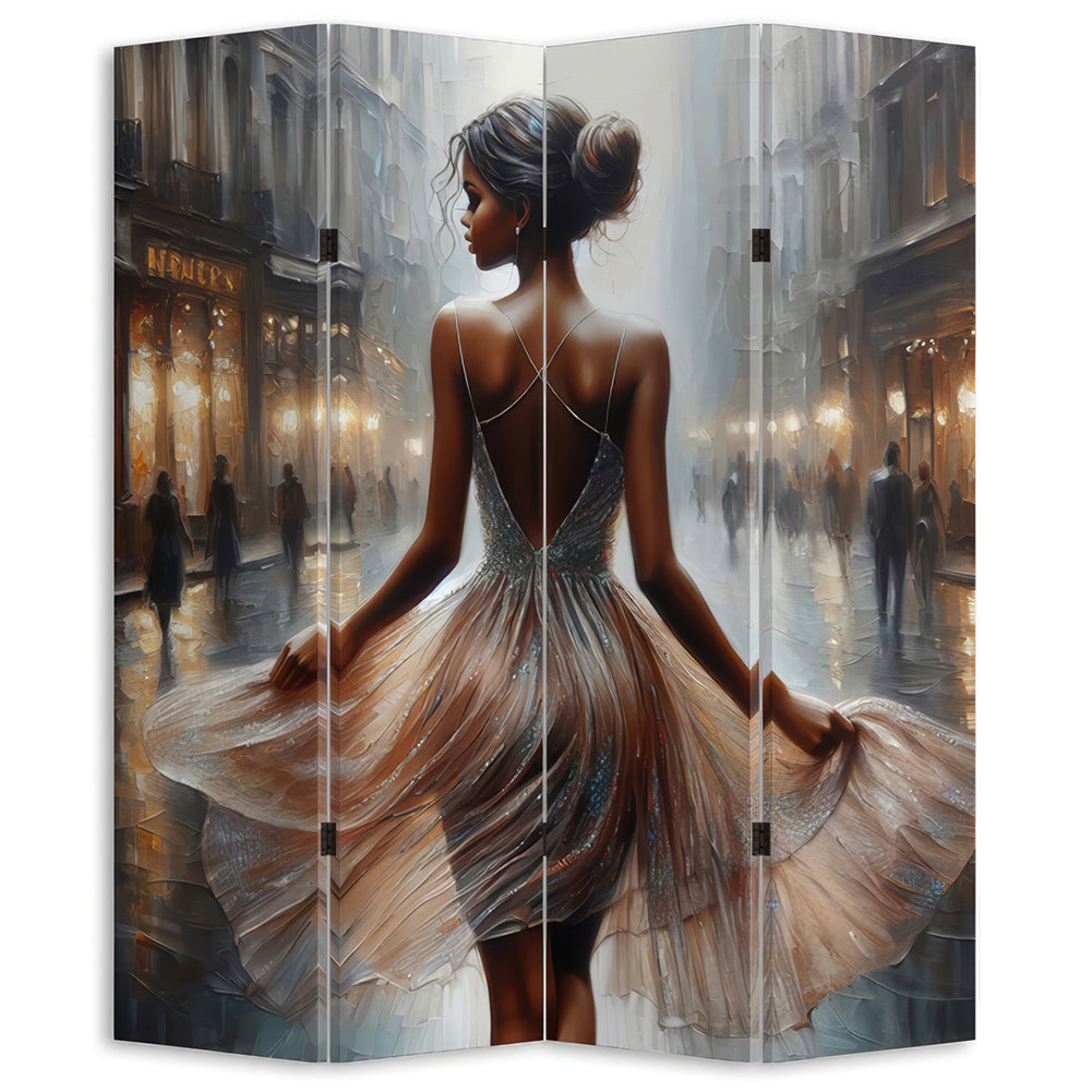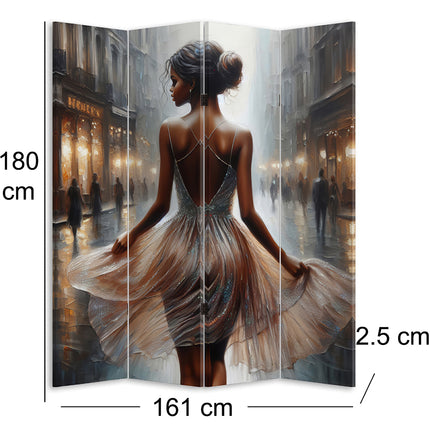 Paravento Separé 4 Pannelli Struttura Legno Stampa La ballerina 180 x 161 cm