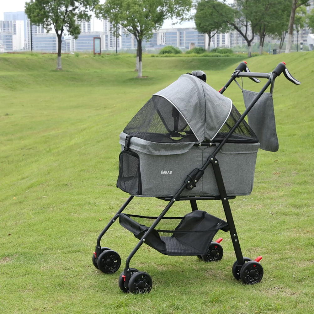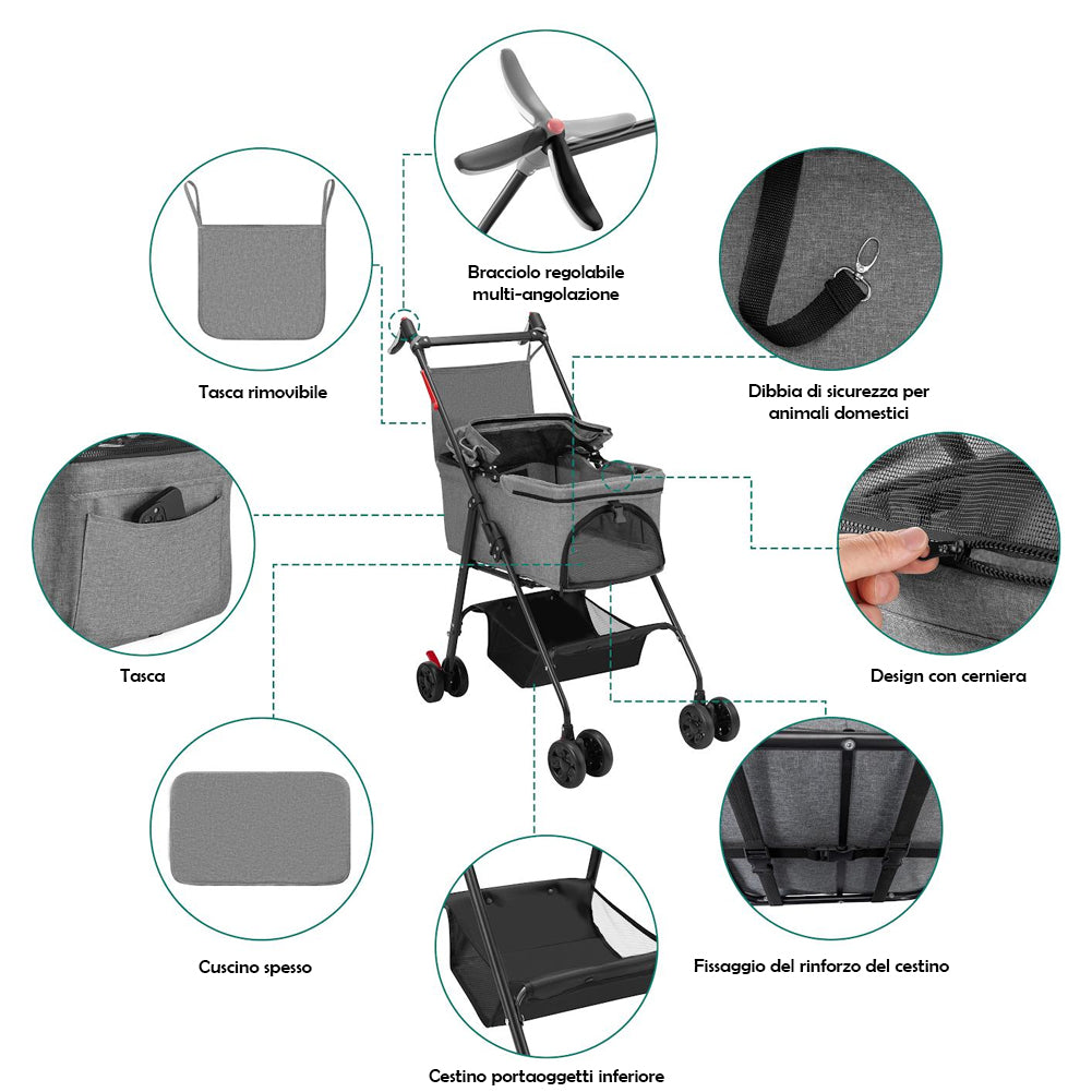 1 x Passeggino per Animali Domestici Cestello Rimovibile Carrozzina Cani Gatti Grigio