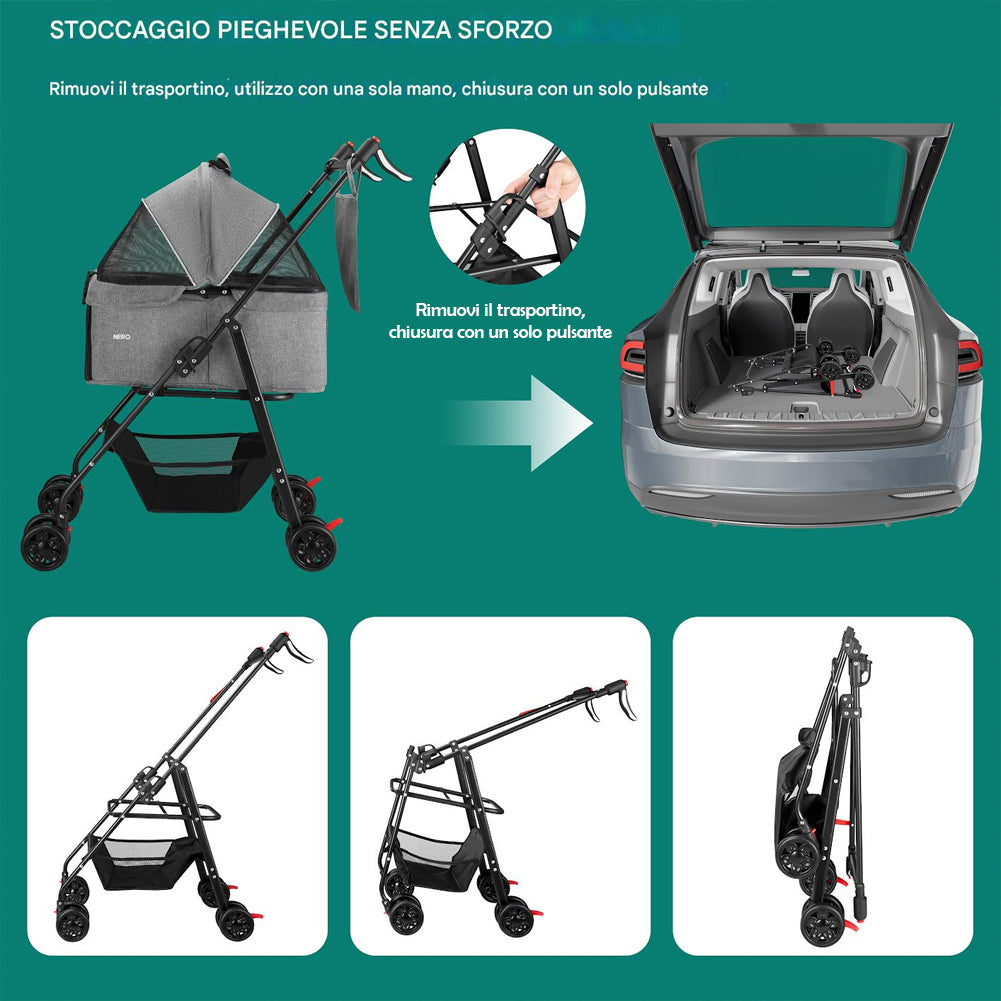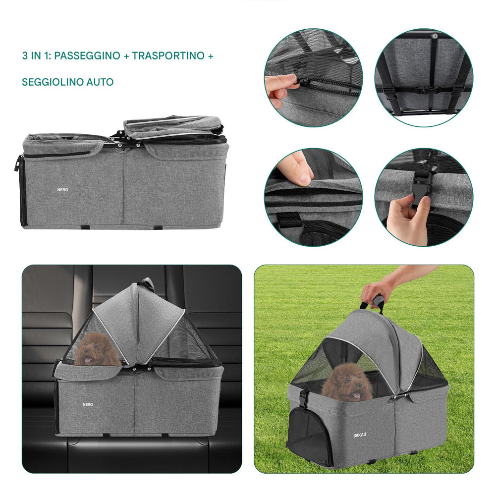 Una soluzione ideale per chi cerca versatilità, perfetta per le visite veterinarie, viaggi brevi o passeggiate senza dover spostare l’animale dal suo spazio confortevole.