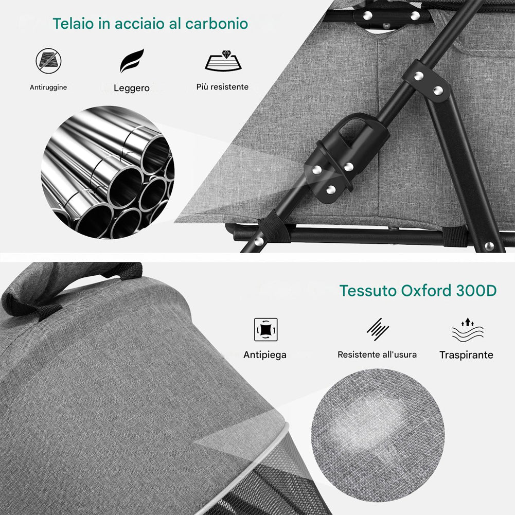 Con un telaio in acciaio al carbonio da 16 mm e spessore di 0,7 mm, il passeggino garantisce un equilibrio perfetto tra compattezza e stabilità.