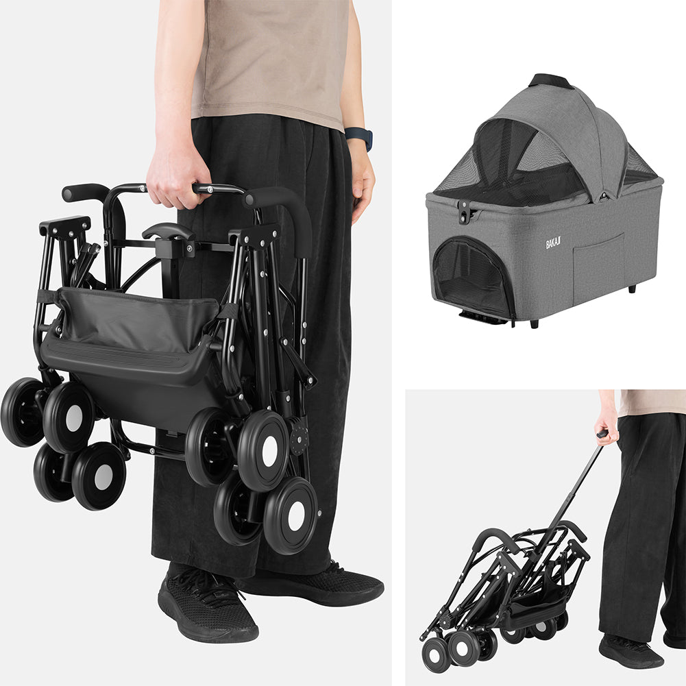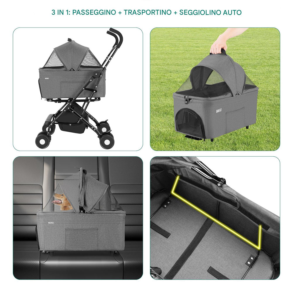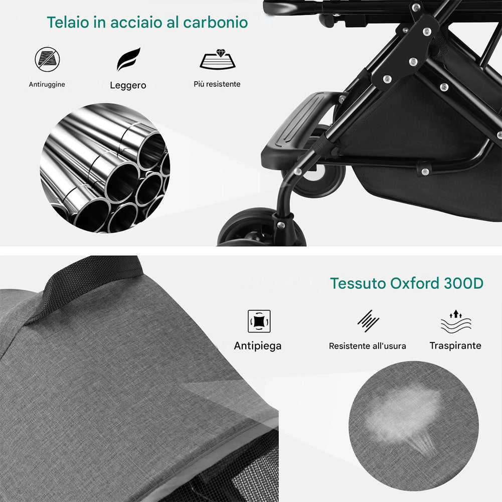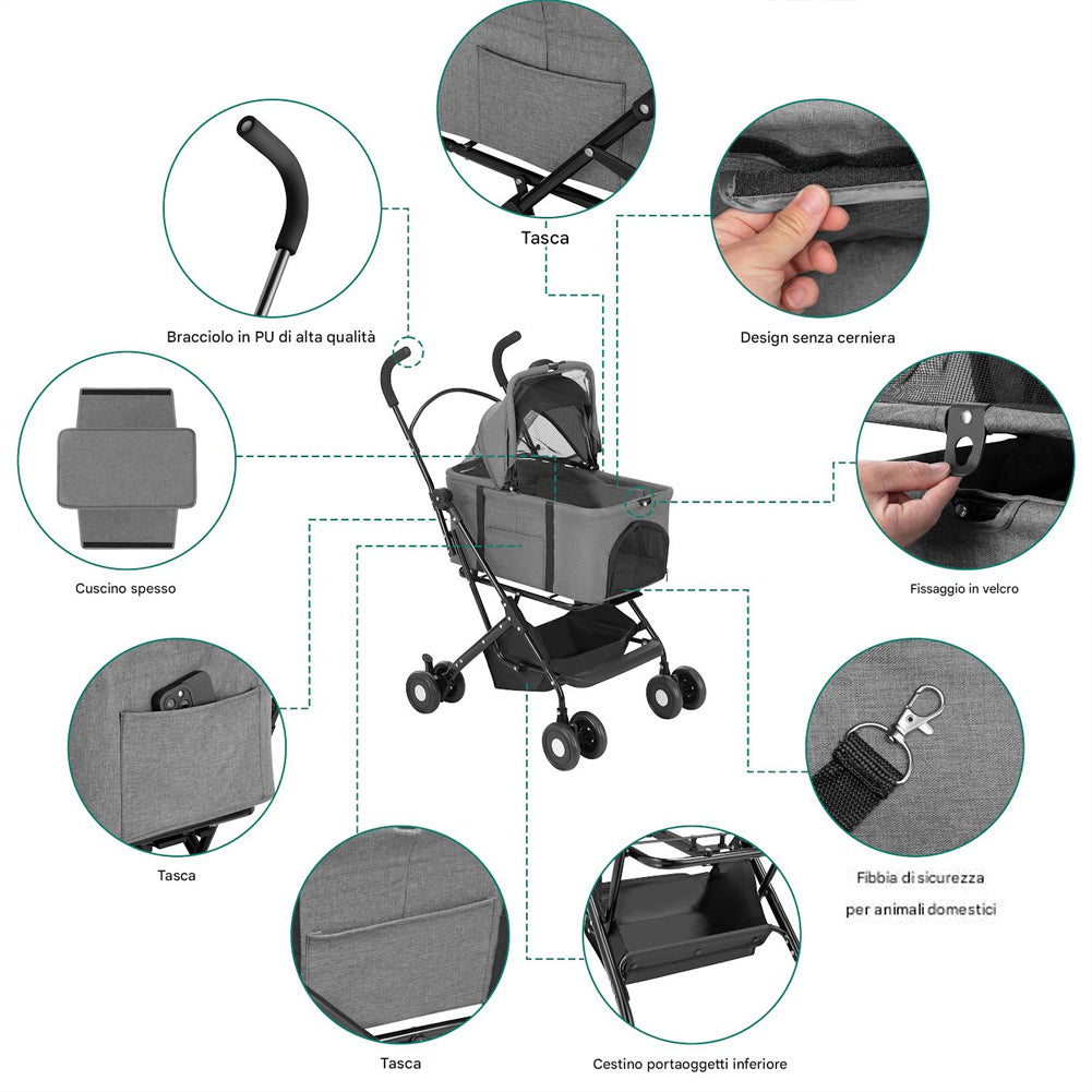 1 x Passeggino per Cani e Gatti con Traportino Rimovibile per Animali Domestici Grigio