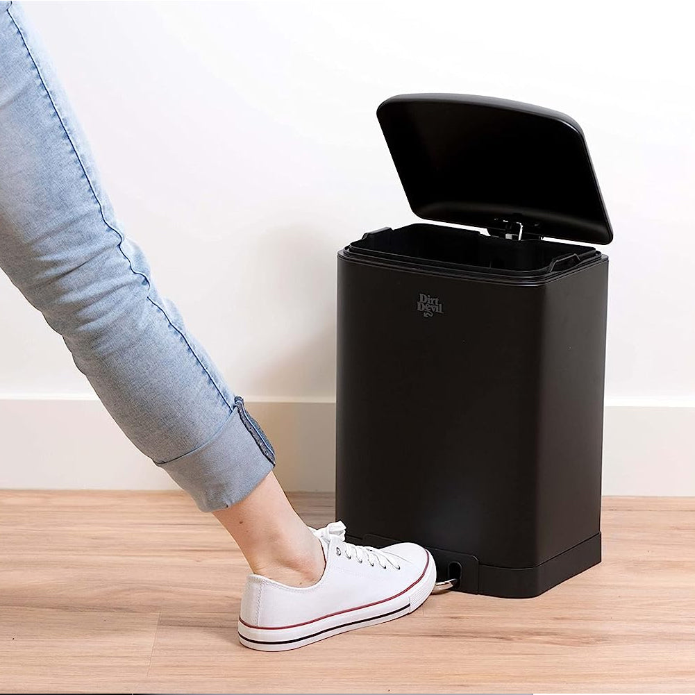 Non lasciare semplicemente i rifiuti in giro, ma gettali in questa spaziosa pattumiera a pedale Dirt Devil con una capacità di 12 litri.