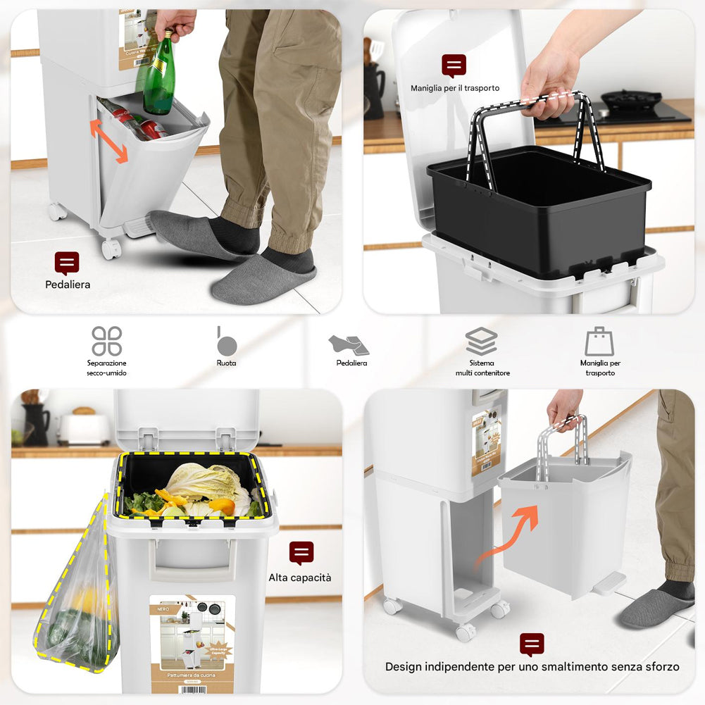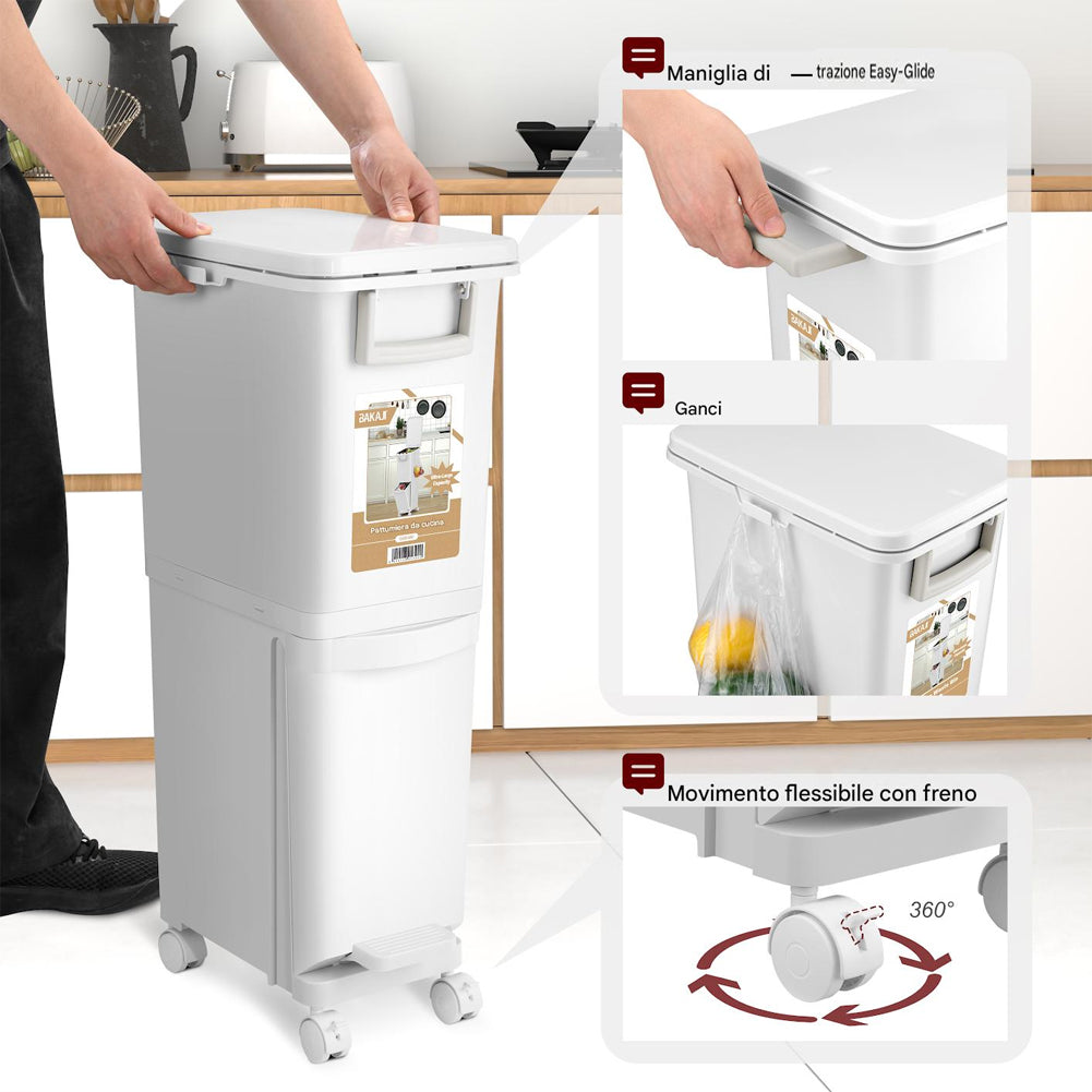 Organizza rifiuti organici, plastica, carta e altro ancora senza confusione, mantenendo la cucina ordinata e sostenibile.