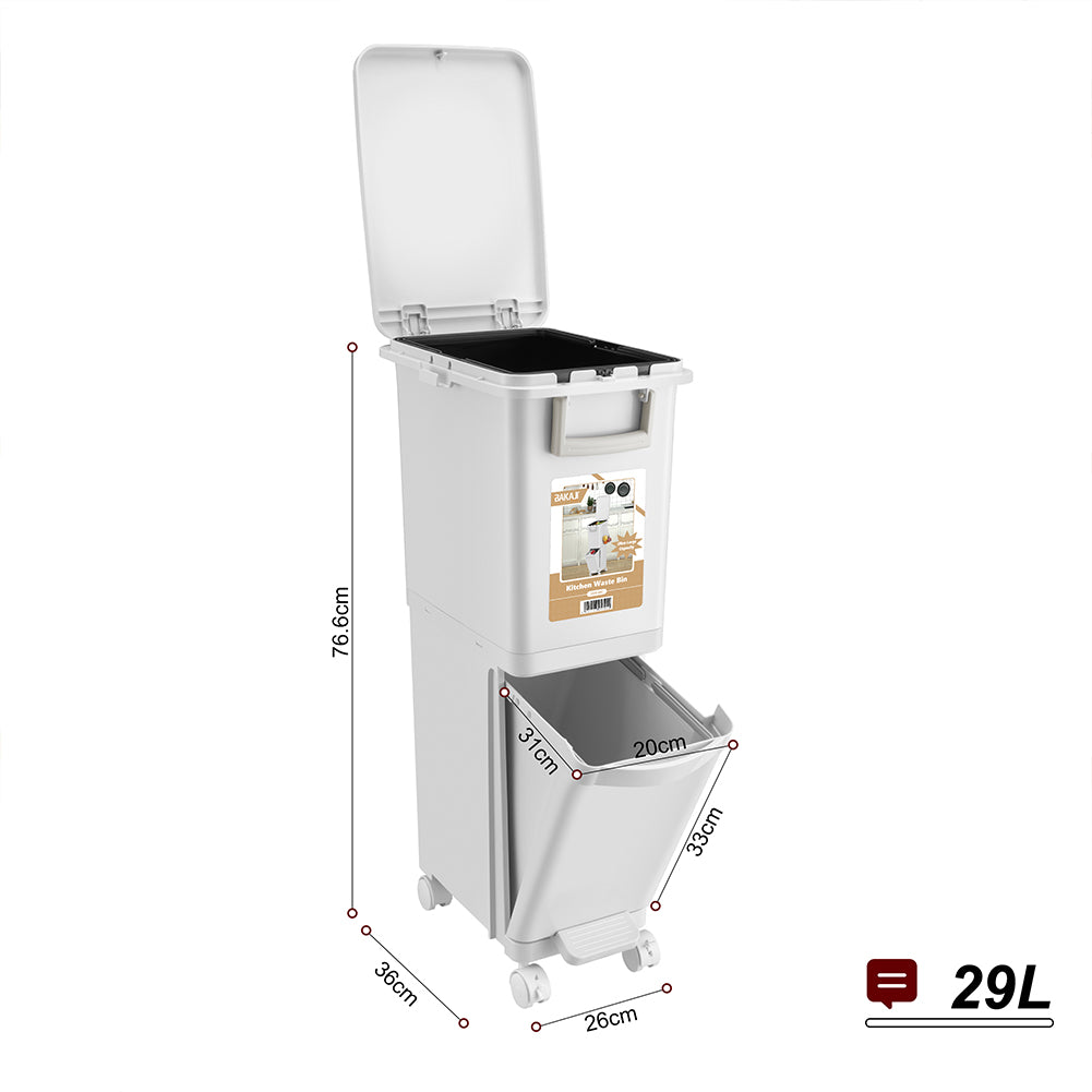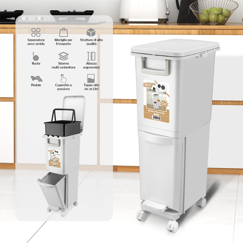 1 x Pattumiera da Cucina Capacità Bidone 29L Secchio Ribaltabile Rifiuti Salvaspazio