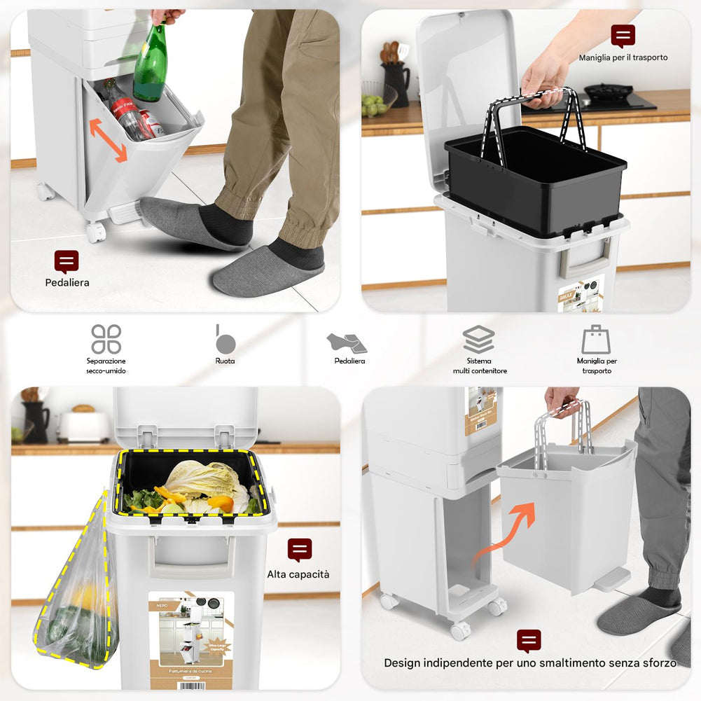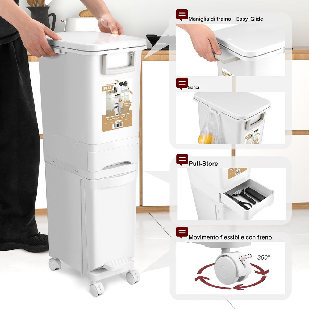 Organizza rifiuti organici, plastica, carta e altro ancora senza confusione, mantenendo la cucina ordinata e sostenibile.