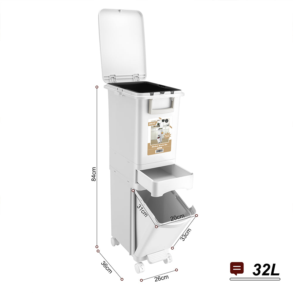 1 x Pattumiera da Cucina Capacità Bidone 32L Secchio Ribaltabile Rifiuti Salvaspazio