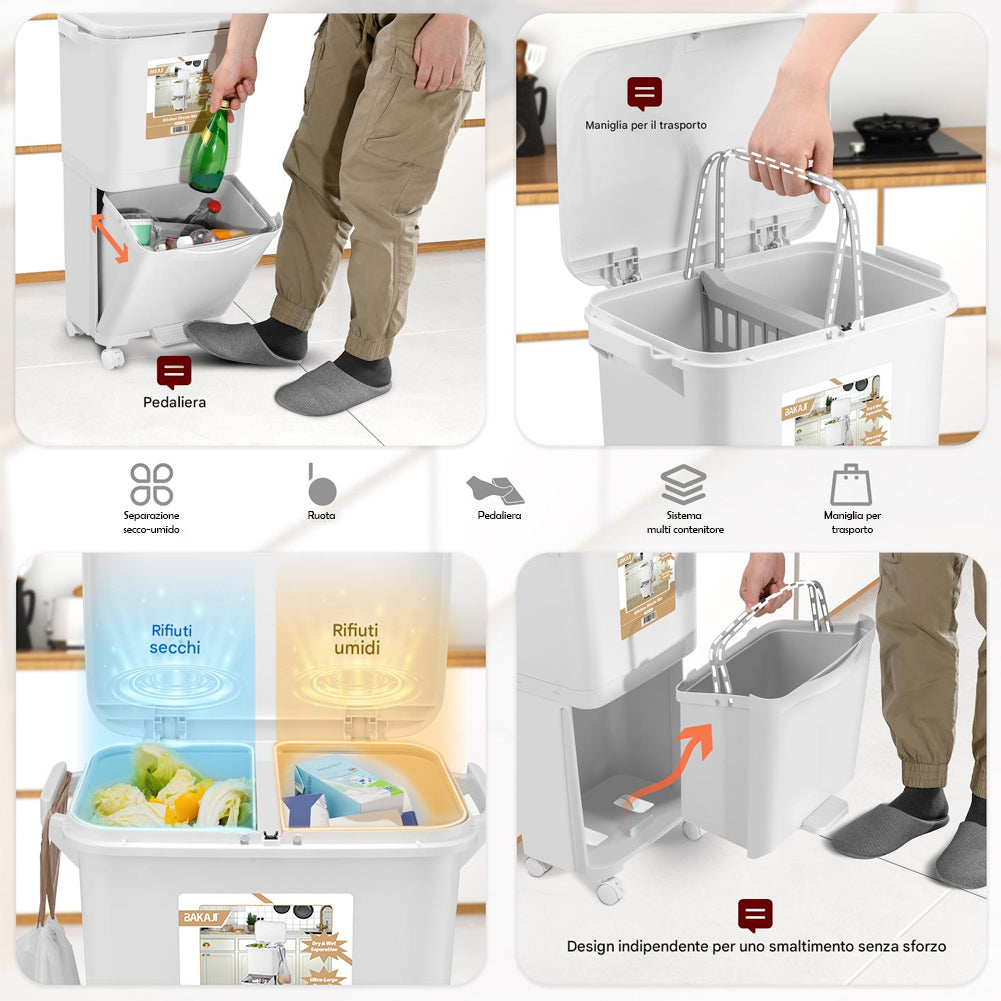 Organizza rifiuti organici, plastica, carta e altro ancora senza confusione, mantenendo la cucina ordinata e sostenibile.
