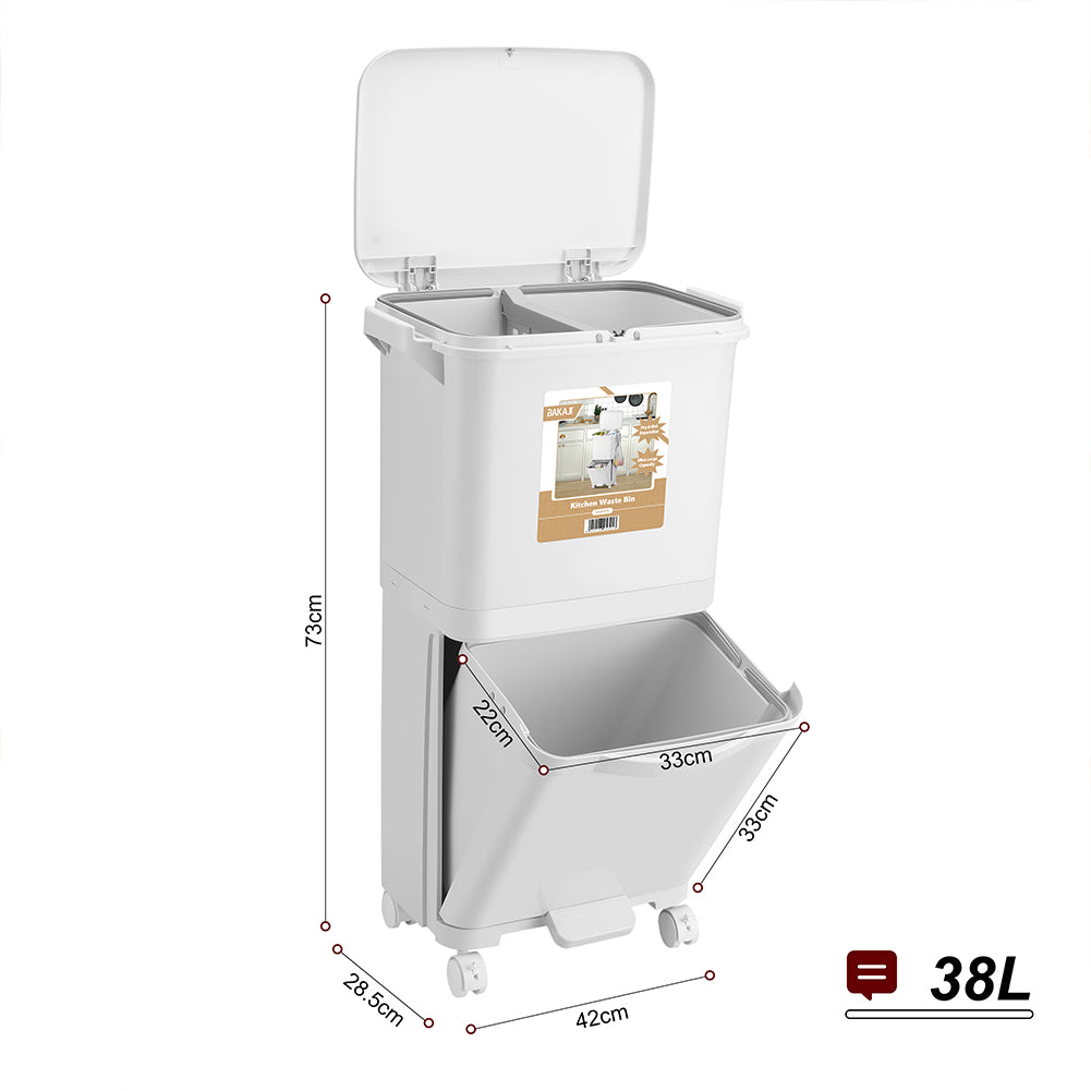 1 x Pattumiera da Cucina Doppio Bidone 38 L Secchio con Separazione Rifiuti Salvaspazio