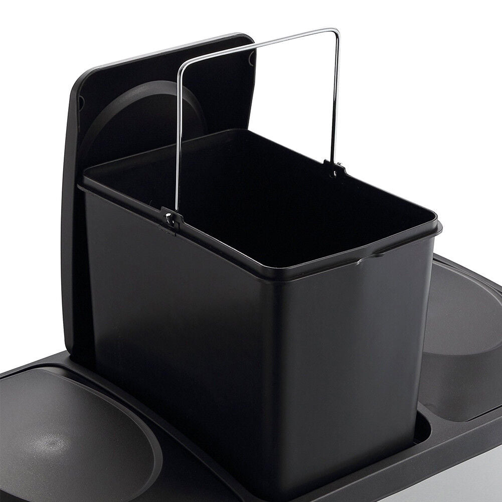 Pattumiera Raccolta Differenziata 45 LT Acciaio 3 Spazi Bidone Spazzatura Pedale