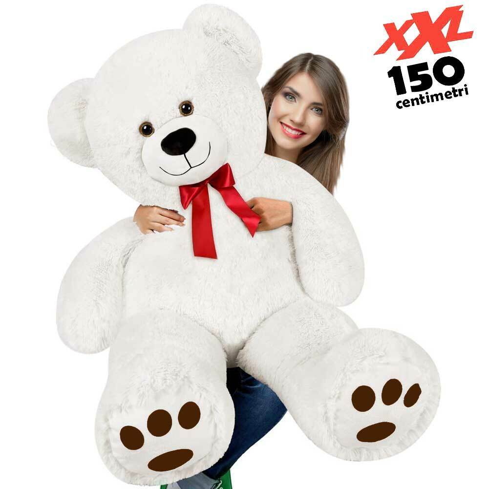 Peluche Orso Gigante XXL Alto 150cm Pupazzo Bambini Orsacchiotto Morbido Bianco