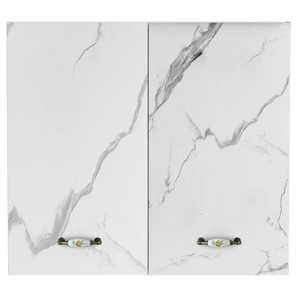 1 x Pensile da Cucina Armadio Sospeso da Parete Doppia Anta in Legno Bianco Effetto Marmo