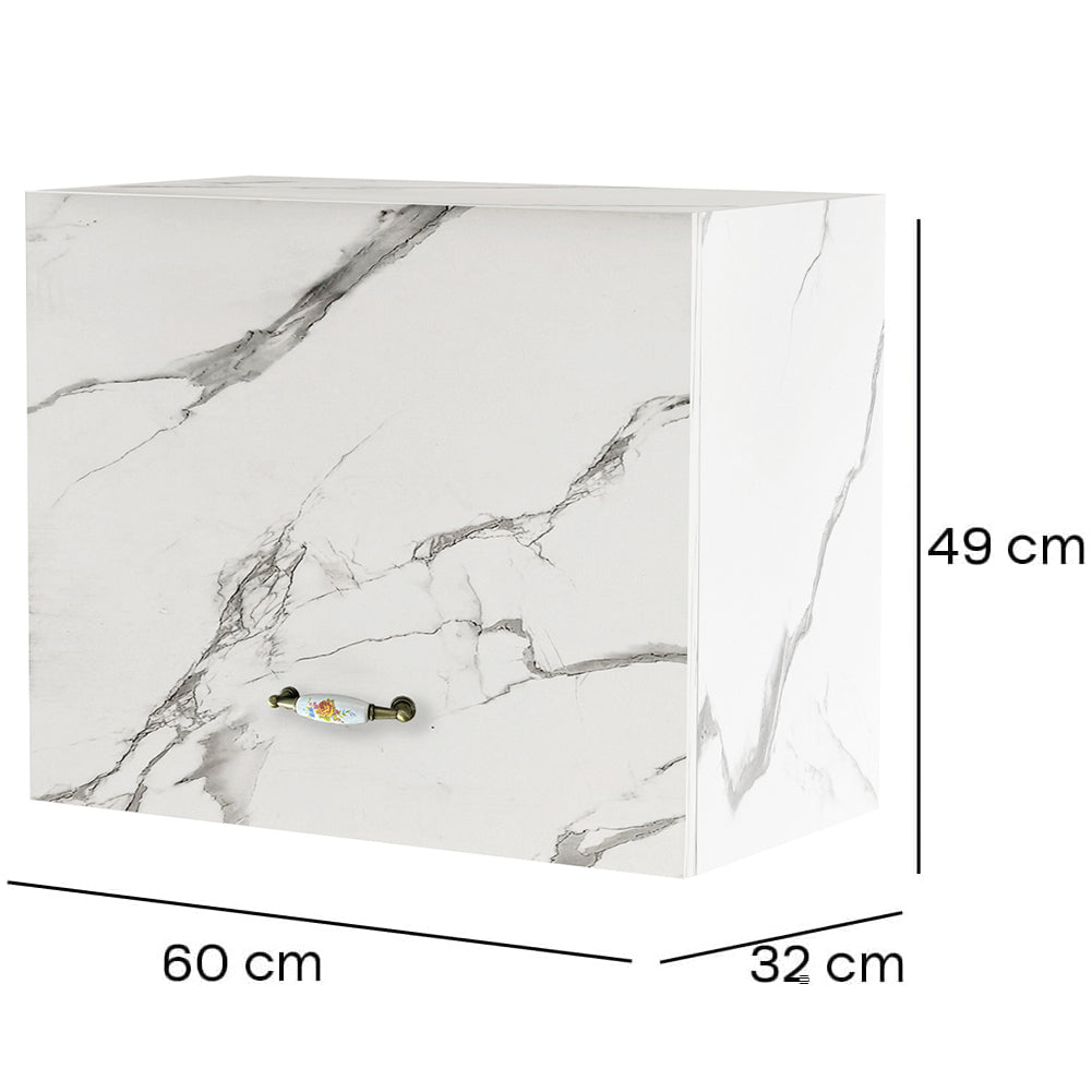 1 x Pensile da Cucina Sopracappa Ribaltabile Sospeso da Parete Bianco Effetto Marmo