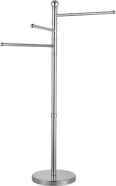 Piantana da Bagno Porta Asciugamani, Acciaio Base Tonda con 3 Braccia