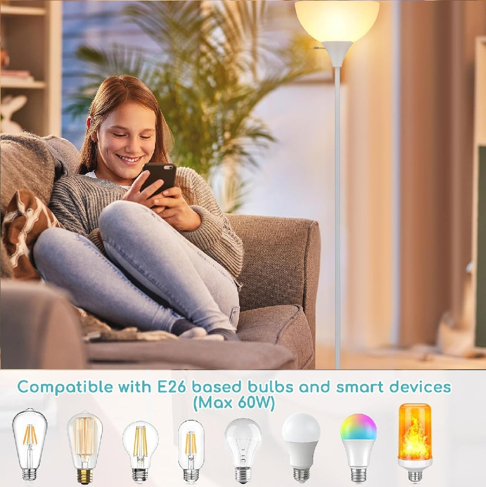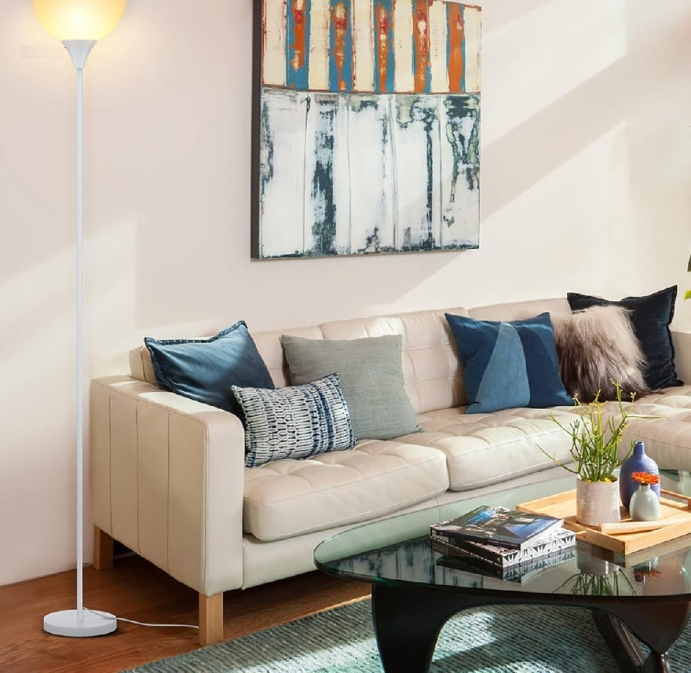 Piantana da Terra Ufficio Soggiorno Metallo Bianco Trasparente H.185cm E27